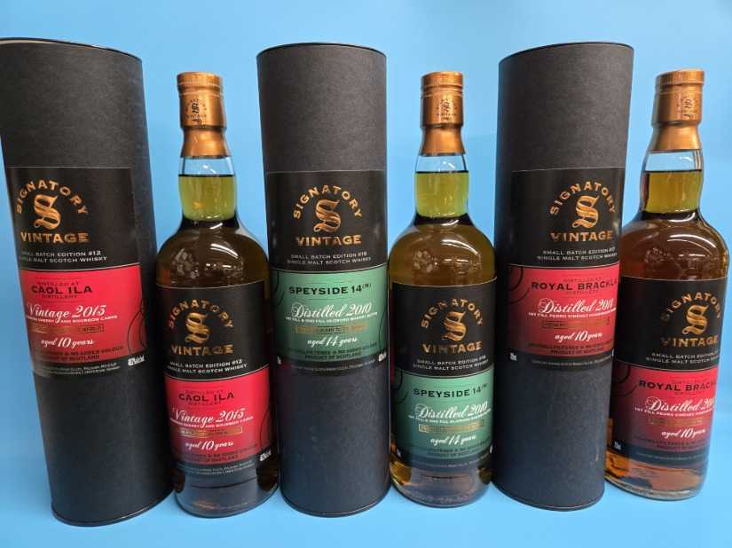 写真ひだりから【新・中核シリーズ】シグナトリーが保有する貴重な原酒を、初心者やウイスキー愛好家と幅広く楽しめるよう48.2%で瓶詰め カリラ 2013 10年 Small Batch 48.2% 700ML 11700円(税込)1st Fill Oloroso Sherry Butts & Hogsheadsスペイサイド 14(M) 2010 14年 Small Batch 48.2% 700ML 11000円(税込)1st Fill & 2nd Fill Oloroso Sherry Butts ロイヤル・ブラックラ 2014 10年 Small Batch 48.2% 700ML 10200円(税込)1st Fill & 2nd Fill Oloroso Sherry Butts