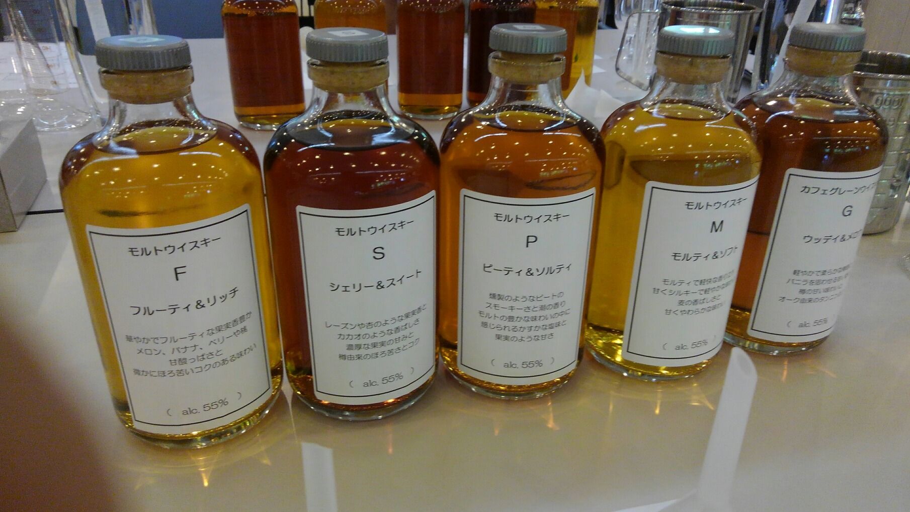 そしてお楽しみのブレンダー教室4種類のモルト原酒とグレーン1種を自分の好きな配合でブレンドし瓶詰めとの事で時間が少なくサンプルを3種しか出来なかったのですが参考の配分は考えず自分の好きな配分にブレンドしグレーン少な目シェリー原酒多めの甘めのウィスキーを作りましたこれはとても面白くまた挑戦したいと思いました