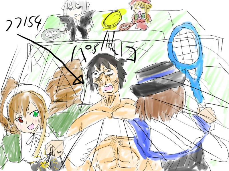 「テニスのダブルスをしているドールズ」と「線香花火をしている蒼星石」と「エロおkな気分ならふたなり翠を騎乗位する蒼