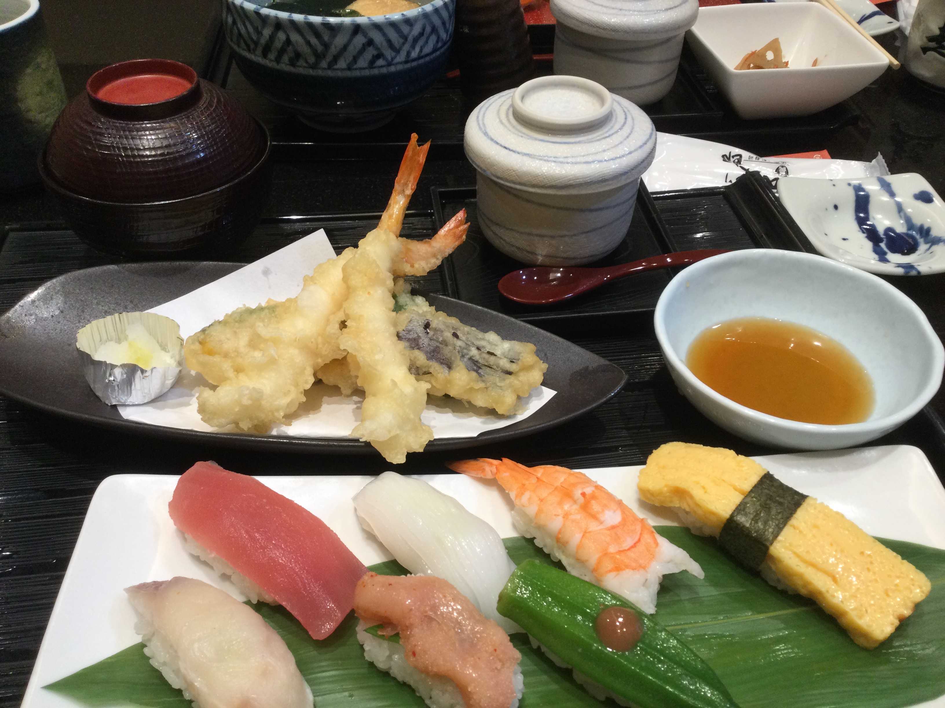 天ぷら美味しかった目の前で揚げてくださる美味しさがある特に海老と舞茸美味しかったごはんおかわり自由っていわれて、ごはんと茶粥いただきましたごはんの定番、塩辛、ゆず大根食べ放題ちょっとしあわせな時間ありがとうございます😊