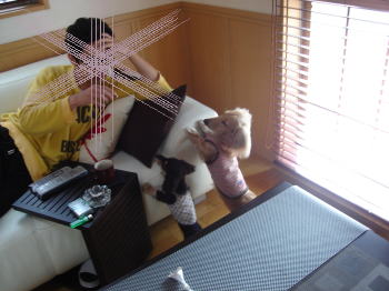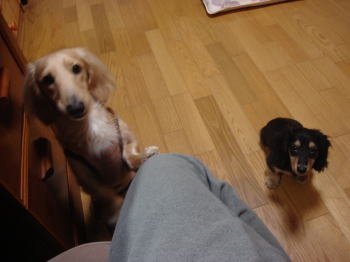 今日でお留守番生活5日目です。お互い大分慣れてきました。私達が家にいるときはアーミーはケージから出してあげますが、そのときはプロレスごっこ、ひっぱりあっこ(おもちゃの取り合い)追い掛け回しっこ、などかなりミニ運動会状態になっております。でも考えてみれば、マイキーはこれまで、遊びというと、私達のボール投げなどだけでしたが、犬同士の遊びに慣れてきたので、おっとり屋から、ちょっと競争心なども芽生えてきたので、やっぱりマイキーにも良かったかな~と思えるようになってきました。最初は下痢したり大変でしたので、どうなることやら。。と思いました。今朝は朝7時前から、マイキーのお散歩(徳川園コース)に行ってきました。アーミーは主人が家の中でお相手してお留守番でした。私達もこのごろは連休あたりの習慣か二匹いるからか、朝6時には起きている、実に健康的な生活(夜は早寝!)になっています。明日はお休みです♪また休みが待ち遠しいですね。