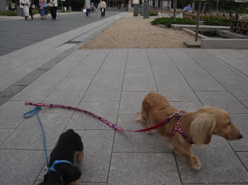 今日は夏日のような暑さになりました。昨日から、家中の布モノ(布団カバー・キッチンマット・玄関マット・マイキーたちの部屋の敷物などなど・・)ありとあらゆる布モノを洗濯しました。大きいものはお風呂で洗って・・私は休日は布モノをたくさん洗濯します。そうするとすごくすっきりするんですね~。主人もいろいろ車・家の玄関周りなど掃除してくれましてかなりすっきりしまして。車の中、マイキーたちの毛がけっこう落ちますからね。。さて、午後からドライブがてら、いろいろまわって名古屋駅近くの「ノリタケの森」というところに行きました。ここは以前は陶器のノリタケの工場だったのですが、今はきれいな芝生のある公園、そしてノリタケの陶器がかなり安く買えたりもする場所です。半年ぶりくらいに行きました。今もけっこうにぎわっていました。ここは芝生以外の屋外はワンコオッケーなのです。季節の良い時はオープンテラスでお茶ができます。なので、ワン連れでも楽しめます。マイキー・アーミーはかなり注目されました。やはり二匹で歩いているのは珍しいのでしょう。小さい子にもマイキー・アーミーを触らせてあげました。アーミーのほうが、ちょっと人気だったかな。。やっぱり小さいワンコってあんまり見かけないですから。。犬好きの女の子に出会い、マイキーだっこさせてあげました。ちょっとマイキー迷惑そうですが。。この女の子、すっごい犬の扱いになれていたのです。まるでプロ!です。おうちでも二匹かっているようでした。その後、帰りがてら名城公園に行きました。「犬広場」にはたくさんのワンコがいました。ここはちょっと散策するくらいでした。お天気がいいと外で楽しめますから良いですね。私達も久しぶりに屋外の休日でリフレッシュできました。マイキーの新しいリード&ハーネスができました♪おなじみのエムズクラフトクラブさんです。ニューヨーク好きの私達にちなんで、星条旗柄です。(とはいっても、マイキーが来てから行っていないので..今年は行けるかな~)アーミーは小さいのに歩くのがかなり好きなようです。だっこして歩いていると、キャンキャン泣いてバタバタして「歩きたいよ~!」と訴えます。でも気にしながら抱っこしたり・・今日はたくさん歩きました。