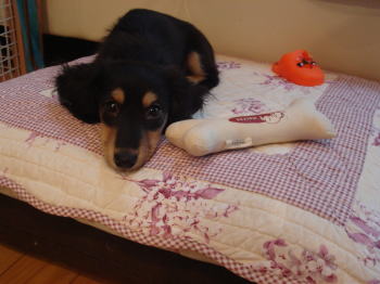昨日は残業して、夜9時前まで会社にいまして、ちょっとお疲れ気味でした。でも会社と家が15分くらいの通勤時間なので助かります。(最近ほとんど車通勤です。時は金なり!です仕事&主婦業&育犬が忙しいので一日の駐車場代1200円を出しても・・週3回は車通勤です)そんなこんなで、夜9時過ぎには帰宅しました。金曜はもともと主人が飲みで遅くなる、しかもお昼に一回、マイキーたちの様子を見に行けるとのことだったので、気兼ねなく残業もできます。夕飯つくりも不要でしたし・・こういうときは自分の時間を思い切り使えます。夜テレビで松居一代のお掃除の話を見ていたら・・私も実は掃除・洗濯大好き!なので、朝一番に布団シーツなど洗いたくてうずうずしていました。でまた朝6時に起きていろいろせっせとやって、8時前~。マイキーとアーミーには7時にごはんをあげて、私はようやく朝8時すぎに朝ご飯を食べました。そしたら・・私の朝ご飯を狙っていたのですが、おすそ分けがもらえなかった二匹は、ほぼ同時期にいやがらせシッコ!をやらかしました~!さっきそうじしたばっかりなのに!なので、お仕置きで二匹揃って「ケージ10分間の刑」でした。全く!またこの二日間にはどんなハプニングが起こるかな。。今はすやすやとお昼寝?中です。アーミーはちゃんと自分のおもちゃをキープしています♪しっかりしています~。