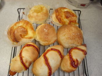 先日買ったオーブンレンジ「ヘルシオ」でのパン作りに励んでいた連休後半でした。3回パン焼いてみたのですが、一回目はオーブンの特性がつかめず、ふくらみが足りなかったり、火力が強すぎたり、、食べられるけど失敗・で、2回、3回焼いているうちにヘルシオの特性がつかめてきました。3回目のミニ食パンはかなり出来が良かったです♪写真は食パンとウインナー入りパンです。食パンかなりふんわりできました。型に入れたほうが、きれいに発酵できる気がしました。で・・パンを焼いている間は時間があったので、前から夏仕様にしたかったので、クッションカバーを作りました。青で統一することによって、涼しさが出るかな~と。こういうプロバンス柄のファブリック物って、市販のを買うとかなり高いんですよね~。(松坂屋本店の北館に、かなりいいプロバンスファブリックの店があるのですが、値段が・・)自分で作れば半額以下ですから~。右端は去年作りました。そのカラーに揃えました。雨のおかげで、少し涼しくもあったし、パン作りやミシンかけもできてよかったです。夜は主人の実家で食事をごちそうになりました。マイキー・アーミー達は明日からまたロングお留守番がんばってね~。私達も仕事がんばります♪マイキーが車の窓のぞいていると、アーミーも同じ事したがります。真似ッ子です。