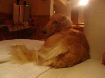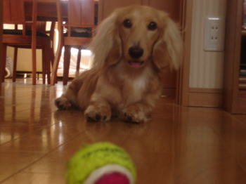 今日は名古屋で仕事の日でしたが。。かなり忙しかったです。もうちょっとのんびり過ごすハズだったのに。。やはり本社にいると何かと忙しくなりますね~。さて、今日は仕事早めに終われたので、私の友達夫婦(先日結婚した友達です)が、名古屋に大相撲名古屋場所を見にきていたので、相撲観戦後に会いました。結婚式以来、会っていなかったので、ご主人にも会えてよかったです♪で、もう一人、友達夫婦はもう一人友達を誘って名古屋場所をみていたようで。その女性の人は、一ヶ月前の結婚式で同じテーブルだったので、私もお久しぶりです、と言う感じだったのですが。。いろいろ話をしていたら、その人はエステシャンでネイリストでした。で・・そのお店ってたしか、私の会社の人で私も良く知っている人も行ってるな・・と思ってその人の名前(Aさん)を言ったら、なんと担当しています!といわれてびっくりしました。世の中狭いですね~。その場で、私の会社の人(Aさん)に携帯電話して、そのエステシャンの人に電話代わったら、すごいびっくりしていました!でもさすが、エステシャン、敬語の使い方などがすっごく丁寧できれいでした。やはりさすが、こういう美容業界って、ホスピタリティの精神がきちんとしているな~と感心しました。今日はとてもサプライズで楽しい一日になりました。マイキーはボール遊びが大好き!です。疲れ知らずです。かなりの運動量になるでしょうね~。ボール投げてもらえる、のスタンバイ中です!アーミーはまだボール遊びに目覚めていません。二匹一緒にボール遊びだったら、大変ですね。。