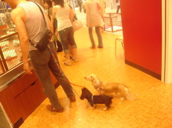 今日は昼すぎから雨です。。昨日は、とっても暑すぎ!ましたが、今日はちょっと楽ですね。昨日は、ランチに夏バテ防止に、「カレーが食べたい!」とここ3日くらい思っていたので、主人と一緒に近所のカレー屋さんに行きました。「サンティプール」というお店で、去年の秋ごろにできたのです。なんだか行く機会がなく・・いつも行きたいな、と思っていたのですが、ようやく行けました♪家から徒歩2分なのに。。ランチ700円!なのにすっごいおいしく、ナンも焼きたてでおいしかったです。シェフさんはもともと覚王山の有名カレー・紅茶専門店「えいこくや」のシェフだったようです。大満足のランチでした。かなりおいしかったです!で、午前は洗濯・掃除などして、がんばっていたのですがランチ後は、「あづい・・」とうだうだしていました。そこで3時ごろから、主人の提案で、土岐アウトレットショッピングに行きました。ドライブ&マイキー達の散歩&ちょっと買い物と夕涼み・・のいろんな用途をかなえられるよいお出かけでした。ここは、御殿場アウトレットなどと同じ系列なので、けっこうアウトレットって実は苦手だったりするのですが、(ちょっと売れ残りみたいなもの多くて、あまり買うものがない・・という感じがあったのです)割と商品が充実していたと思います。ワン連れの人もちらほらいました。土岐は岐阜のちょっと山のほうなので、名古屋よりも涼しく感じました。けっこうにぎわっていました。写真は夕立中なので、人がアーケードのところに避難しています。途中夕立がきたので、もっと涼しくなりました。マイキーたちもけっこう歩いたので、楽しかったようです。私達も、リーガルのおしゃれサンダル(私)・ナイキのビーチサンダル(主人)を買いました。またフランフランというおしゃれな雑貨屋さんで、前からほしかった台所用のおしゃれゴミ箱も買いました♪(今のゴミ箱、もうすぐ5年使用になるので、ちょい汚れてきていて、台所を暗くしていたんです・・)これで、すっきりとなります♪ワンがいながら、こうして一緒にいろいろ買い物できるとはとてもありがたかったです。お店によっては、ワンを抱っこしていれば、一緒に入店オッケーでした。名古屋からは車で1時間ちょっとです。またお散歩&レジャーを兼ねて行きたいと思います。夜は9時まで営業なので、夕涼みがてら出かけるのにはいいですね。