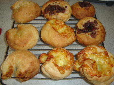 お昼前からパン生地二回作って発酵して・・食パンと、菓子パンなどいろいろ作ってみました。今回は、菓子パン系はスーパーカメリヤというお気に入りの粉で焼き、食パンはスーパーカメリヤ+スーパーキング(半分ずつ)で焼きました。この間はスーパーキングオンリーで作った生地がちょっと重かったので。。スーパーカメリヤはきめがすごく細かく、ふっくら膨らみます。もう発酵がいい感じに膨らむんですよね~。あんパン・チーズパン・ももジャムパンです。けっこうあっさりしていて、つい食べ過ぎてしまいます。ももジャムパン(左列)は型崩れ防止の紙を敷くのを忘れてしまい、ちょっと形が崩れました。。先日買った型で食パン焼きました♪これから近所の名古屋ドームに行って、阪神戦見てきます。家からだと、自転車ですねっ。でも今シーズン行くのは初めてです。今、中日首位だからお客さんも盛り上がってそうです。