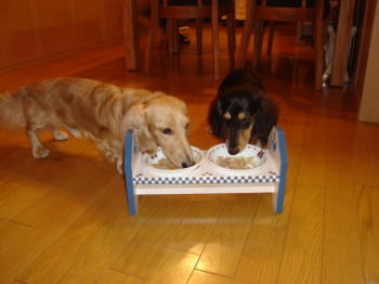 夕方に、私のお気に入りのショップ「エムズクラフトクラブ」さんに、マイキーアーミーの食事台を取りに伺いました♪先月オーダーしたものです。(お店のリンクはお気に入りブログにブックマークしてあります♪)早速夕飯に使ってみると・・今まで使っていたお皿もぴったり~☆で、高さもちょうど良かったです。側面には、マイキーの「M」とアーミーの「A」とトールペイントしてあります。ご主人にお任せでデザインしていただきましたが、本当すばらしいです♪また、これなんと3000円!です。いつも、こちらのグッズはかなりお安くて、安すぎてそんな値段でいいの~!と思う私です。ぜひぜひ、2ワンの方、オススメです♪一匹の子でも、ご飯とお水用と使えますね。デザインもお好みのイメージを伝えれば、そのように仕上げていただけると思います。(ただし、デザインによって、料金変わると思います)やっぱり、またエムズクラフトさんにはまりそうな私です。家の小さな花壇にハロウィンのピックを差してみました。そういえば、我が家の表札もエムズクラフトさんのでした♪