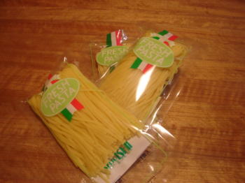 主人が夕飯いらない日・・最近は、一人でパスタ夕飯ということが多いです。というのは・・生パスタ麺のパスタにはまっています♪ゆでる時間も3分でいいし、またもちもち感がとてもおいし~のです。ゆで時間3分というのもうれしいです。一度試しに買ってみたら、このコシのある麺に感激~。乾麺とは違います。一人前120円~150円くらいかな?私はJR金山駅出たとこにある、成城石井で買ってます。まとめ買いして冷凍もちょっとしています。ソースは自分で作って・・本格的パスタが家でおいしく、かつ安く食べられます♪<番外編>日曜日に同窓会の参加賞でピアニシモママさんにいただいた、馬のひづめ。これ、実は匂いがきついかな・・と思っていたのですが、そうでもなかったです。(今のところ)マイキーアーミーに大人気!です。いつも二匹で奪い合ってカミカミしています。一個で長持ちするからまた今度買い置きしておこうと思います。ユカリさんありがとうございました♪