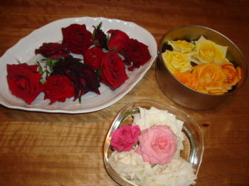 今日仕事先で行ったところでとってもきれいな花を買いました。これでなんとたったの100円!たぶん茎がいたんでしまってこういう形で売っていったようですが、我が家はこれで十分です!お風呂にも浮かべられそうですが。。もったいないので、色別に分けて当分、家のいろいろなところに飾ろうと思います。涼しくなったので、切花が買えるようになりました。暑いとすぐ痛んでしまいますから~。夜には久しぶりに近所のマッサージに行きました。3週間くらい行っていなかったのですが、ここ3日くらいかなり体が固くちょっと体調不良でしたが、血行がよくなってすっきりしました。今からまた半身浴します♪アーミーかなりダックスらしい体になりました。いつもお散歩はマイキーよりも早足です。今日の夜もお散歩元気いっぱいでした。