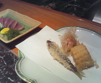 ようやく明日で臨月。。この一ヶ月はあまり歩いてはいけない自宅安静状態で、またハリ止めの薬を飲んでいました。少しの外出はOKだったので、ちょこちょこ外出してそれなりに堪能できたので、寝たきりで絶対安静!という訳ではなかったので、産休の前半はそれなりに楽しめました♪車で移動しているから、歩かなくていいですし。。超特急で、ベビー用品の準備や入院準備もできたし。。一時期は毎日のようにネットで買い物したものが「ピンポーン♪」と届いておりました。本当、ネットショッピングは便利ですね~。けっこういいものあるし、値段もリーズナブルですし。あ、名古屋にいる私でも「IKEA」で買い物することができました♪IKEAでのお買い物は私の夢だったので、かなりうれしかったです。(ちょっと特殊な方法なので、また後日披露しますね~)ただ、今週の木曜日が検診日なのですが、この日からはハリ止めもすっぱり止めるし、また逆にガンガン動いていいようで・・急にそうしたら、すぐにも生まれそうで・・なんだかそれもコワイんですよね。今も、やはり自分としては赤ちゃん下がってきているな~と感じているし。38週くらいで産みたいんですよね~。先生は「37週でもオッケーだよ~!」と言うんですけど。。まだ心の準備がぁ。。37週って言ったら、来週ですよ~!さて、先週金曜日に姉とフレンチ料理を食べたのに。。やはり例の近所の天ぷら屋さんにはどうしても行っておきたく、この連休に主人と行きました♪このお店は、天ぷらだけでなく、山菜を使った小鉢がとてもおいしいです。普通にえびやお野菜の天ぷらはもちろん出てきますが。。こうした、梅肉を真ん中に入れて揚げるといった創作系の天ぷらがこちらのお店は得意で、おいしいです。これは主人が毎回のようにオーダーする「うにとろろ」です。かなり主人のお気に入りのようです。ご主人が特別作ってくれました。生きた沢カニを上げて、そうめんを揚げて作ったものの上に載せて・・「沢にいるカニ」天ぷらバージョンです。創作料理の域ですね~。生きたままのカニなので、とても新鮮でカルシウムもいっぱいです。今回は、さすがにおなかがかなり出てきたせいか普通席が苦しく、ソファ席に移りました。また量が食べられず、主人にかなりあげてしまいました~。やはりもう、この妊婦のおなかでは限界かも・・と自分の限界を感じました。。主人がまた近いうち、会社の人たちとここで天ぷらパーティをするみたいなので、私の分は、お持ち帰りしてもらうとします。