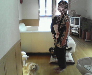 今日は2週間ぶりのマッサージの往診でした。みゆき先生という、私と同い年の方で、付き合いも長いので、往診が楽しみです。終わってから一緒に食べるランチも楽しみの一つ。いろいろとおしゃべりしながら・・いつも簡単なものばっかりですが。。今日のお昼はきのうメゾンカイザーで買ったパンを使ってサンドウィッチ・野菜スープ・サラダです。うちは、サンドウィッチはよく作るのですが、いつもの市販の食パンよりもおいしかった~。挟んだものは卵焼き・ハム・チーズ・きゅうりとシンプルです。焼きたてパンのおいしさをまた再発見したのでそろそろパン焼きを再開しようかな~。みゆき先生にちょっとだけ真織もマッサージ。みゆき先生が帰ってから、先週ベビーマッサージ教室で教わったマッサージをやりました。真織はとってもきもちよさそうでした。先週よりも首がすわってしっかりしたような・・一週間でも赤ちゃんってだいぶん違います。毎日成長しているんですね~。今日は雨でお散歩行けず。。マイキーたちはちょっと不満そう。真織のプレイマットのピーピー鳴る音にかなり反応!これは友達から出産祝いでもらった大事なプレイマットなので、マイキーたちの餌食になるわけにはいかない!かわいそうなので、この後、おもちゃを出してあげました。日曜日は、アーミーのブリーダーさんのピアニシモ家の同窓会があります。晴れるといいな~!久しぶりに皆さんに会えるの楽しみにしています♪