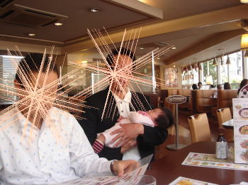 今日は、産後初めて会社に行ってきました~。家からは3キロくらいしか離れていないので、すぐ近くですし、毎朝、主人を会社に車で送ったあとに、自分の会社の前はよく通るのですが・・朝早いのであまり誰かには会わないのです。なんとなく、この4ヶ月間は、自分にとってはちょっと子連れでは入りにくい場所・・でした。会社に行く前に、先輩たちとランチ。写真の先輩達も家ではパパなので、抱っこも慣れたもの~。私も抱っこ紐から開放されて楽しくランチできました。すごく助かりました~。4ヶ月ぶりの会社はあんまり変わっていなかったです。当たり前か・・でもとても懐かしかったです。この4ヶ月というのは自分にとっては入社以来、初めて会社を長く離れてすごした時間で。前は、12年近くもこの会社に来ることが自分の生活の一部でしたから・・会う人会う人が温かく迎えてくれてうれしかったです。本当は人事部に書類を届けて、自分の所属していた部署に顔出してさっと帰るつもりが・・・いろんな人に声かけられて3時間も居てしまいました!真織が心配だったのですが、抱っこ紐の中でzzzz.ほとんどの人が真織の目をあいたところを見られませんでした~。残念!自分の育児話をしたり。諸先輩からのアドバイスを聞いたり。またこの4ヶ月に起こった会社での事件?などを聞いたりと楽しくすごしました。今も時々、会社の先輩たちがメールを送ってくれてちょっとした近況を教えてくれるのですが・・こうして会社に少し来ると、また早く復帰したいなあと思う反面、いや来年の4月まで真織とゆっくり子育てがんばりたいと思ったり・・人間はわがままですね。。お母さんはわがままで欲張りです!この笑顔のためにもがんばらなくては!でもこうして、育児休暇という制度でこうして休んでいても温かく迎えてくれる会社にとても感謝の気持ちが湧いた一日でした。せっかく与えられた育児休暇、毎日を充実して過ごしていきたいと改めて思いました。来年の4月まで・・楽しんで子育てしていきたいです♪
