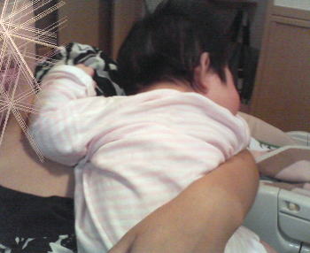 今日で生まれて2ヶ月です。最初の一ヶ月はあっという間に過ぎていったけれどこの一ヶ月はちょっとしたお出かけやお散歩も楽しめるようになりました。夕方の抱っこタイム~。左側が肩こり。。最近ベビービョルンのキャリーが欲しいな~と思っています。それだと簡単に縦抱っこできるから。。さて、今日は会社近くのデニーズで会社の先輩とランチ。一時からだったのでお店も空いていてまた綺麗なソファシートだったので、真織もスリングに入っておとなしく寝ていました。先輩とは一ヶ月ちょっとぶりに会いました。一年上の先輩なので、友達感覚ですが。。お互いの近況や会社の話などをして楽しく過ごしました。隣にはホテルがあるので、先輩とのランチが終わってからも、ホテルのお手洗いでオムツ替え~。今日は初めてバスに乗りましたが、バスも数分ですし、また昼間なので、空いていてとても楽でした。赤ちゃんづれだと皆に話し掛けられますね。バス停降りてデニーズはすぐでしたから移動も楽。家を出るときから、トイレとか段差とかいろいろシュミレーションして。。デニーズに入るまでは階段なのでベビーカーはやめたり。。とシュミレーションしていったことがとても助かりました。今日の行程は意外と楽だったので、またこれはレギュラー化して月一回はランチしましょうね~と先輩と約束しました♪ホテルのお手洗いでオムツチェックして、ホテルのベーカリーで焼きたてパンも買えました~。意外とお手ごろ価格でおいしいのでこれが買えてうれしかったです。今日は涼しくてお出かけも楽でした。その後会社にもちょっと顔出そうかと思ったのですが、あんまり長い時間になると真織にも負担になるし。。と思い、また次回に。。うちの会社産休中の人がよく来ているんですよね。いざ、自分がその立場になるとなんとなく気恥ずかしくて行きにくい。。さっきまで私のひざで寝てましたが、私がお風呂入る間降ろしました。この格好でぐっすりです。最近夕方からは縦抱っこじゃないとぐずるようになり。。夕方はちょっとぐずりタイムです。まあ、新生児から自我が芽生えてきて成長しているんでしょうね。ただ、夜9時にはすこんと寝てしまい、朝4時~5時あたりまでぐっすりです。深夜一時頃の授乳がなくなりました~。ここ数日の変化です。どんどん成長しているんだな・・と成長の早さを感じます。今朝のショック!ちょっと目を離した隙に真織のおしゃぶりを取られて餌食に・・これで3つ目!これはすごくかわいいから気に入っていたのに。。悔しくて楽天ショップでスペアをまとめ買いしました!でもマイキーたちもいつも我慢じじゃかわいそう・・と私も意外と寛大です。