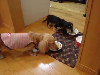 これで、二匹が元気いっぱいに食事しても雑巾でさっと拭くだけなので