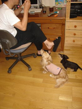 を3つあるのに、執拗にそのうちの1個を取り合いしていました。