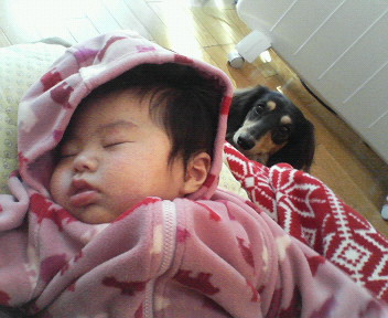 写真は昨日買ったユニクロフリースを着てねんね中の真織です。