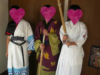 今日も下の娘は友達を呼んで遊んでます。でも・・・いつもと様子が違うそ~っと、2階に上がって見るとアニメおたく達がついにコスプレしてました。(冬休みに広島のアニメイトで買ってきました。)一人のお友達は衣装がないので、娘の胴着で・・・これ以上、深入りしないと良いけど・・・