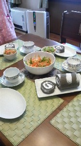 今日は私の実家に行く日手土産に持っていくケーキの準備を昨夜からしました。まずスポンジを焼き、スポンジをセットしたセルクルにレアチーズケーキを流し、もう一枚のスポンジでふたをして冷やしておきます。セルクルをはずしたところです。今日はここから表面に生クリームを塗り ケーキクラムを全体につけて粉糖をふります。"フロマージュ"の出来上がりもうひとつは去年のクリスマスケーキです。スポンジは最後の教室で作ったものを冷凍しておきましただから、デコレーションだけ・・・実家では、16人で食事します。けんかにならないよう2つのケーキを作りました。「大人は我慢ね。」なんて言ったら怒られそうだもん私も食べたいし・・・ 午後2時から恒例の写真撮影!(コマエのホームページに去年撮った集合写真がのってましたよ)真ん中の集合写真です。毎年こんな感じで撮ってもらってます。皆様も記念にいかがですか?最初は嫌がってた父親も今では喜んでくれていますその後は、実家に行って夕食の準備です。毎年父親がたくさんの蟹を買っておいてくれるのですが・・・いつもは焼いて食べる蟹を主人が"しゃぶしゃぶ"で食べたいと言い出し・・・生の蟹の殻をむぐのに2時間かかりました。これはゆでてある蟹です。後は焼肉をしましたよ。今日もお腹いっぱいみんなケーキを食べてくれるか心配しましたが、やっぱりケーキは"別腹"あっという間に完食姪っ子たちは、いつまでもお皿とフォークを離さないでいました。これは大きいお姉さんたちグループいつまでも仲良く(一つの椅子に5人が・・・重量オーバーだと思うんだけど)