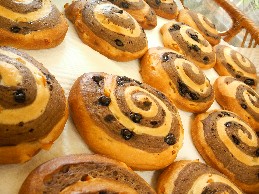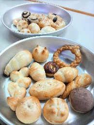 今日は初級クラスの教室ですメニューは「レーズン・チーズバンズ」今日はレーズン嫌いの方が多く、チョコバージョンも作りました。いつも元気なYさんがおとなしいどうしたのかと思ったら、チーズが嫌いで息を止めてるシナモンも嫌いな方も今日は大変ですね~「シナモンロール」カスタード+オレンジスライスカスタード+ココア+チョコチップも作りましたよ少しずつ全種類試食しました。お楽しみメニューは「水ようかん」でした今日も賑やかな教室になりましたよ