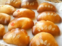 今日は中級クラスの教室ですメニューは「レーズンツイスト」生地にはシナモン、レーズンがたっぷり美味しいパンですよ「オニオンベーコン」お楽しみメニューは「キャラチョコ」でした。オニオンべーコン焼成中に試食開始。今日はYさんから「かき」、Mさんからフランスのお土産を頂きました。ありがとうございます。大学1年生の娘さんと二人でフランスへ旅行。素敵ですね我が家もいつか・・・ 今朝、身支度中にカミソリで指をばっさりきってしまいました下の娘は文化祭の代休です。大好きなFちゃんとカラオケに出掛けました。「いってきま~す」の声がしたので他所を向いた瞬間。バッサリきゃ~血が止まらないし・・・教室の準備もあります。こういう時、一番先に省く物そう、化粧は諦めました真っ赤なバンドエイドしてビニールの手袋をはめての作業。いつものように捗りません時々左手を心臓より上にあげながら・・・(何か良い物ありませんか~)結局、皆さんにも少しお手伝いいただきました。ご迷惑おかけしました