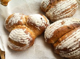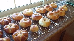今日は上級クラスの教室です私の冬休みも終わって今日が教室始めです。頭と身体は動くかしらさあ、頑張りましょう今日のパンは2つとも生地にたっぷりのお砂糖が入る甘いパンです。「ブラウンブレッド」ブラウンシュガーの風味と自然な甘さが口に広がるブラウンブレッドクルミがたくさん入った香ばしいパン。 「アマンドロール」アーモンドを生地にもトッピングにも使っているパン。お菓子のようお楽しみメニューは「ちんすこう」でした。どれもこれも美味しくて~家族の為に焼こうって、思いました試食タイムは久々のおしゃべり。この時間は大切ですね~。物知りのHさん、何にでも答えてくださいます。さすがです 高校は金曜から授業開始でしたけど中学生は今日から学校でした。相変わらず、子供達に振り回されています。昨夜、10時頃泣きながら2階から降りてきた次女さん。「願書の志望理由を清書で間違えた~」「えっ、随分前に保護者名・捺印はしたんだけど・・・」「明日、朝一で提出しないと選1取り消される~」どうやら、冬休み中に完成させとかないといけなかったみたい。間違えた子は学校へ用紙をもらいに行って・・・それなのに、なぜ、今、する~あれほど入試についてはきちんとしなさい。っていってるのに・・・困ったものですお陰で今朝7時に学校まで行き玄関で保護者名を記入・捺印させられましたそれでなくても捺印はまっすぐ~・かすれない様に気を遣うのに少し斜めになってしまいました しばらく、教室の準備も前日までに完璧にしとかないと朝、何が起こるかわかりませんね・・・次女さんは、先生に気付かれずに提出したそうです。要領が良いんだから