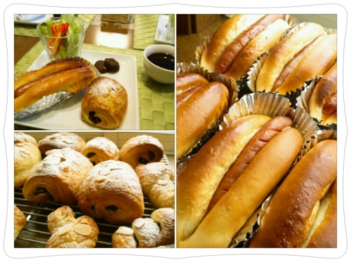 今日は特別講習です先月お休みになったので、「皆さん、お待たせしました~。」です!!メニューは「チョコラ・カンヌベルジュ」デニッシュ生地でチョコの棒とクランベリーを巻いています。皆さん大好きなパンです初級の方でも扱える配合になってます。「チリ・ドック」ウインナーをしっかり押さえてね~って、お願いしたところ一本、行方不明のウインナーが・・・鉄板の上にも落ちてないし、パンの勢いにおされ生地の底にもぐってました。お楽しみメニューは「ソルティ チョコ ナッツ」でした今日も皆さんから元気をいただき・・・癒され・・・楽しゅうございました次回は皆さん、クリスマスケーキ講習です。頑張ります宜しくお願いいたします