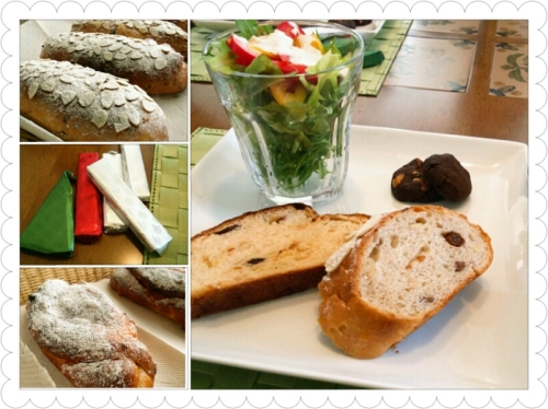 今日は中級クラスの教室です。メニューは、「クリストシュトーレン」「マンデルシュトーレン」お楽しみメニューは、「ソルティ チョコ ナッツ」でした今日も気に入っていただいて良かったですミックスフルーツたっぷりのクリストシュトーレンとレーズンやナッツが入ったマンデルシュトーレン、どちらのパンがお好みでしたでしょうか? 今日のクラスは「美容のお話」に花が咲きました。レーシックをされてる方もお二人いらしてすごいな~来月は、ケーキ講習です。宜しくお願いいたします
