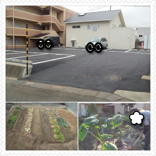 今日は実家の仕事の日ついに、実家の畑が駐車場に・・・教室でお出ししてるサラダは、ここで出来た野菜が大活躍してたのに・・・残念です今度から、裏庭ではなくここへ停めること。と、兄からメールが・・・実家の道路向かいですが、ぐるっとまわらないといけない。少し遠いんですけど・・・普段から、どれだけ歩いてないのかって、皆様からお叱りがきそう。姪っ子が写真を送ってくれました。亡き母との思い出が沢山ある畑が無くなり・・・みんな落ち込んでます。わが子達も・・・だけど・・・固定資産税を考えたらそんな事言っておられないし、きっと野菜も買った方が安いんだろうな~