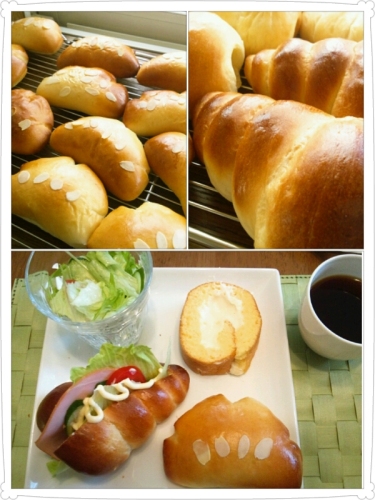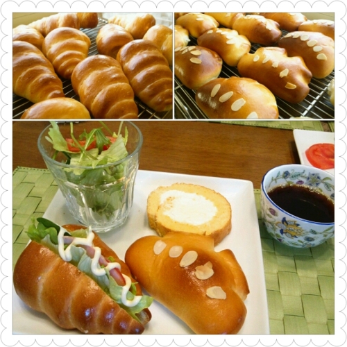 今日は初級クラスの教室ですメニューは「クリームパン」「コルネ」試食ではサラダをはさんであっさりとお持ち帰りにはカスタードクリームかチョコクリームを詰めてお楽しみメニューは「ロールケーキ」でした今日のクラスもお休みが続いたので・・・お久ぶりです3か月の赤ちゃんも参加してくださいましたよ今週パパはリフレッシュ休暇。9連休ですなので、赤ちゃんを抱かせてもらって喜んでました。少しだけ子守係り、助かりました来月もよろしくお願いいたします