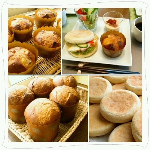 今日は上級クラスの教室です 今日はパワフルクラスです。頑張りましょう メニューは 「イングリッシュマフィン」 「パネトーネ」発酵が長いため、試食用に小も作りましたよ リクエストで「ウインナーロール」3種類の成型をしました。 お楽しみメニューは「紅茶のブランマンジェ」でした お疲れ様でした。パン3種類は結構大変でしたね。 講習中、気づいたらシンクの中には洗い物が無く・・・ 腰やら胸やら痛めておられ、痛い痛いと言われながら 皆さん素早い動きでありがとうございます。 皆様の元気パワーも素晴らしく、付いていくのがやっとの私でした。 来月もよろしくお願いいたします