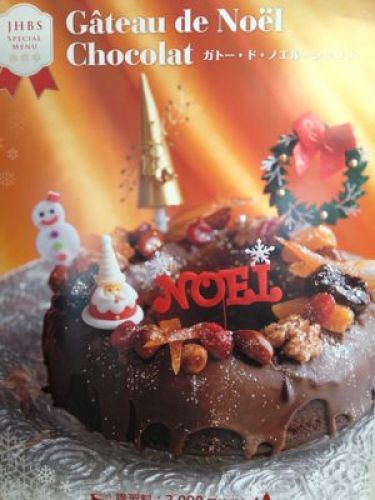 今年のJHBSクリスマスケーキのご案内です今年はシンプルなガトーショコラにチョコレートやキャラメリゼしたナッツ類をデコレーション。講習料はオーナメント、箱付き3,990円です。 12月の予約時にパンかケーキを選択してくださいね