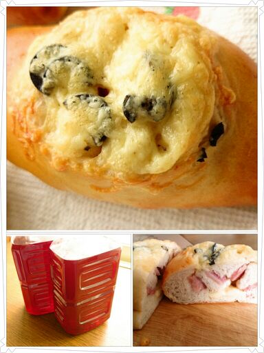今日はお昼ご飯にしようと連習を兼ねてパンを焼きました。 練習したいパンは沢山あるけど、ゴーダチーズを買って来てたので「ロザンジュ」に決定。 ベーコンとゴーダチーズが入っていて トッピングは更におろしたゴーダチーズ 黒オリーブをのせて焼いています。 今日は冷凍庫にあったブロックベーコンをスライスして使ったので、凄く分厚いベーコン。子供達は贅沢じゃね~♪って、大喜び!!その分、成型は大変でした。 パンもずいぶん大きくなりましたよ。 今年はお向かいのお家から、トマト・きゅうりが2日に一度届くのでお礼に焼きたてのパンを持参しました。そしたら、赤じそジュース頂きました。 なんか申し訳ないような~。いつもありがとうございます