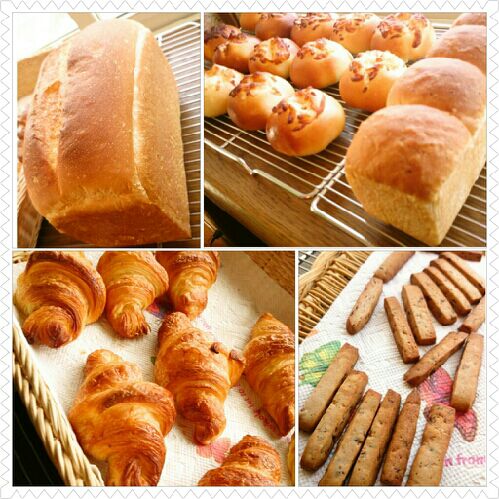 今日は中級クラスの教室でした今日のクラスは、あと2回で中級コースも終了。早いですね~つい先日、中級コースがスタートした気がします。日曜日クラスは振替が取りにくいため、お休みされてた方の振り替えも一緒にしました。通常講習の方が「クロワッサン」「エッグバンズ」振替の方が「バタートップ」「コーンブレッド」お楽しみメニューは「あんスティック」でした皆様、細かいタイムスケジュールについてきて下さりありがとうございます。洗い物はいっぱいになりましたが、お互いが復習できて良いですね。試食も少しずついただきました。来月の講習もパン4種類焼きますよ~。頑張ります