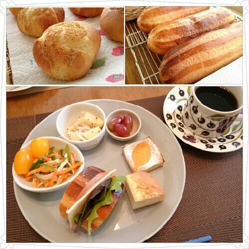 今日は、ファミリーコース1の方のリクエストでお楽しみ講習でした。 メニューは、 「ソフトフランス・ジャポネーズ」バタークリーム、つぶ餡のクリームをサンド。クルミをトッピングしてます。 大人気の「塩パン」 お楽しみメニュー「かぼちゃのベイクドチーズケーキ」でした。 美味しい~♪って、喜んで頂けました。 いつもの講習と違って、忙しかったですね。お疲れ様でした。 皆様、「家族の方がとても喜んでくれるから作れるんです。」って、おっしゃってました。 頑張って作ってくださいね♪\(^o^)/