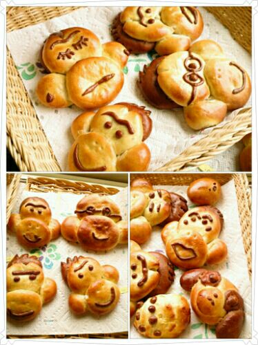 干支のパン「グッドサル」の講習始まってます🎵 今日は、アイデアを貰おうと美術科の次女さんに成形させたら、サルではない「犬」「オーム」「ぐでたま」になりました。参考にならんじゃん! 皆さんもアッコさんとか、色んな顔が出来ました。家族に喜んで貰えると良いですね🎵