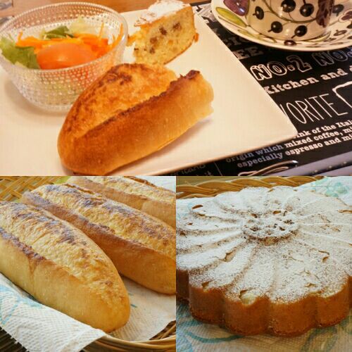 10月10日 (火) ファミリーコース 3 「バターフィセル」 皮がパリッと美味しいフランスパン。 美味しかった♥ 「マルグリット」 マーガレットの形の型で作るアーモンドケーキです。 たっぷりのマジパンローマッセとドライフルーツにグランマルニエ入った大人のケーキ🎵 ゆっくり寝かせて 味わいの変化を楽しんで下さいね。 今日でファミリーコースご卒業です。 おめでとうございます。 次回からはお楽しみ講習でお待ちしてますね🎵
