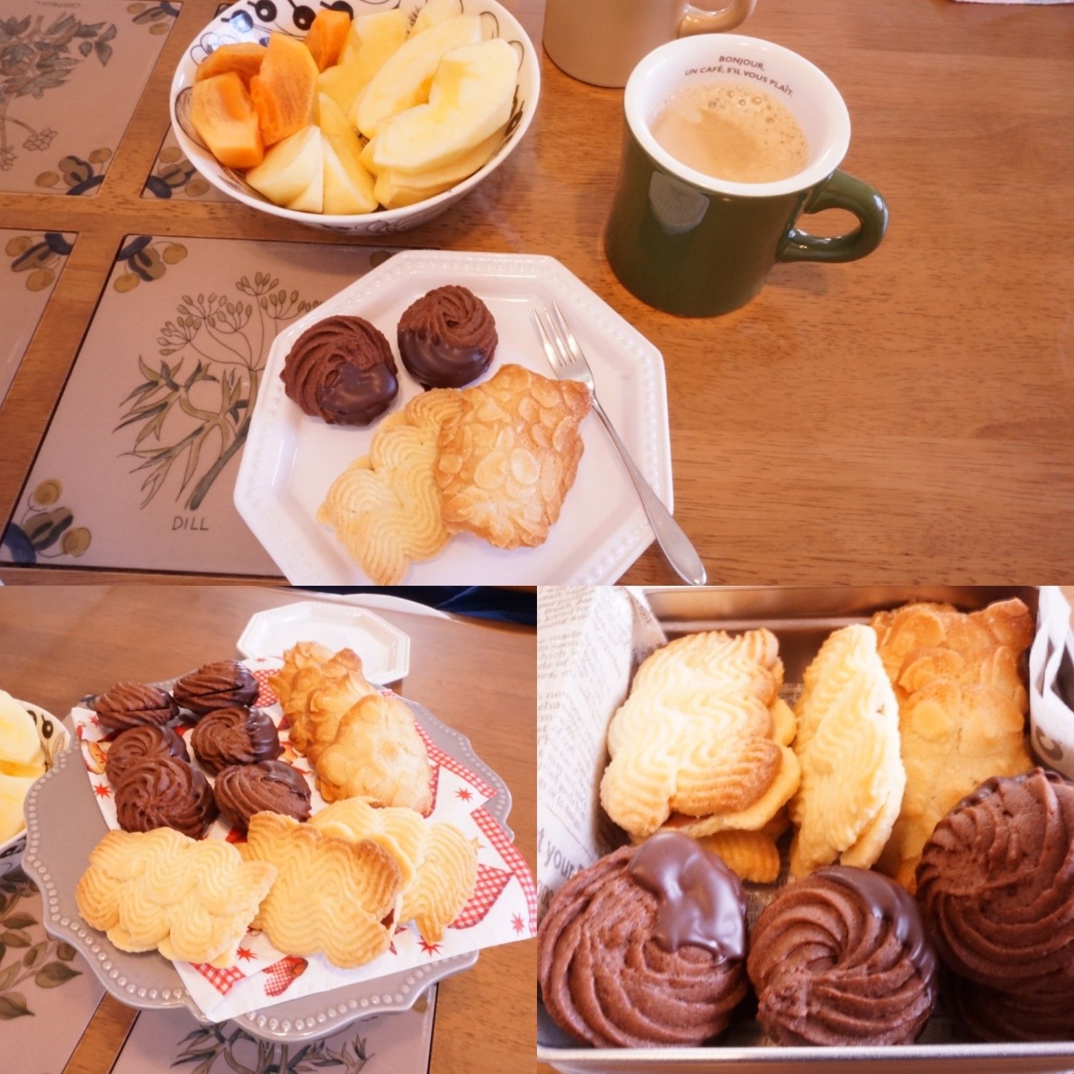 #今日の教室 #JHBS #洋菓子コースpart1 。 「#フールセック 」 ロゼット・ショコラ リヴィエール テュイル の三種類を作ります。 お疲れ様でした。 #クッキー缶 に入れて遊んでみました。 スノーボールクッキーも入れたらいい感じになりそうですね。