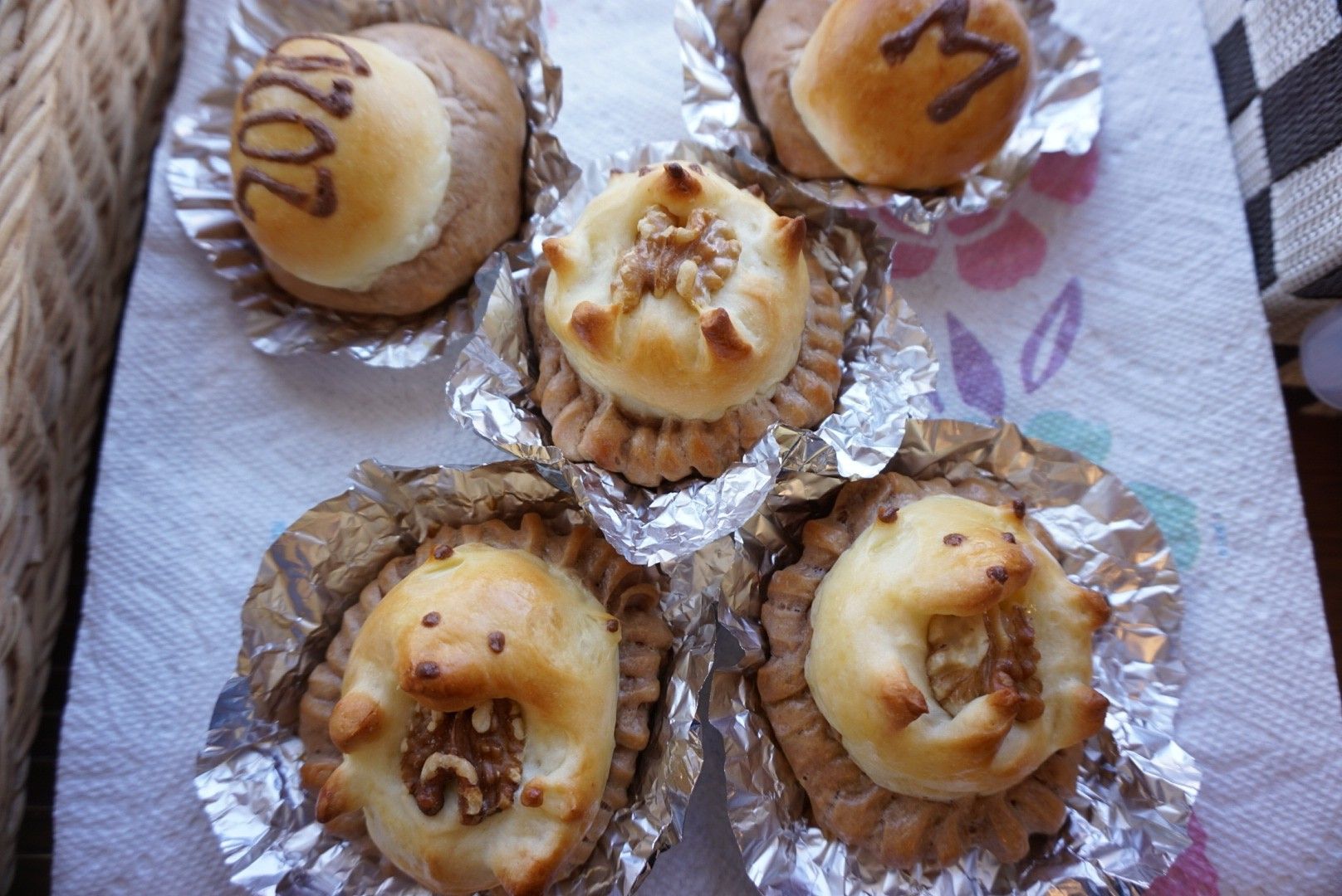 生地にカスタードクリーム、茶色い生地にはチョコクリームが入ってます。