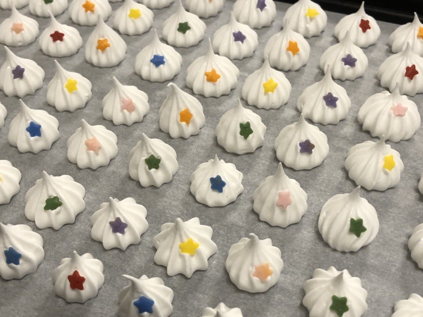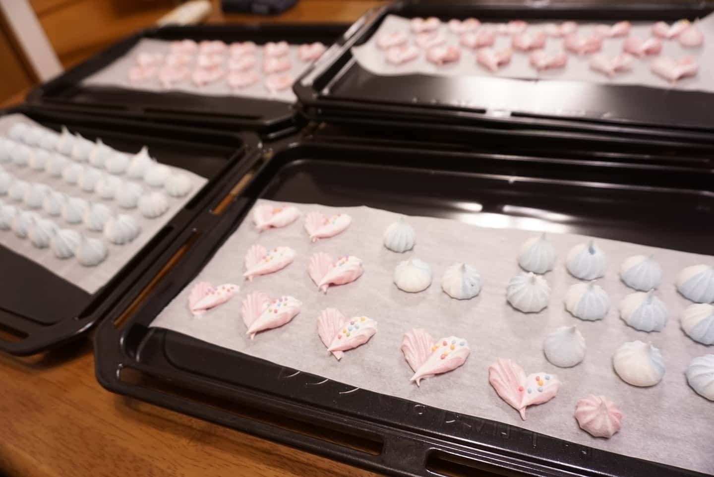 一昨日と昨日でいったい何個焼いたんだろう。(でも、メレンゲクッキーが2段でも上手に焼けるようになった✨) *