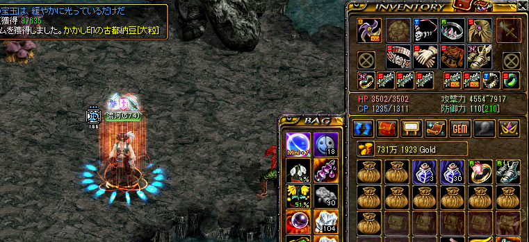 ドロップも何倍かだったからWIZで欠片出ししたらアイテム大変なことになったり・・ゲリラ3倍+パワキでオアシス激ウマしたり・・・経験値だけでお腹一杯なのにアイテムハンター対象アイテムまでドロップしたり・・アイテムハンターは最終的に3部位達成でした。ゲリラのおかげで一気にレベルが上がり・・・おかげで今週の頑張った人に載れたり・・・最終的に791レベルになりました(o'v'o)!!早く大台の800行きたい・・!(o'v'o)そして前回の記事で書いた通り鏡貰いました(。・ω・。)W速度無視カンニ誰か貸して( ノωヽ)シクシク ( ノ・ωヽ)チラッ ( ノωヽ)シクシクオマケ。エンヘイWIZ殿の軌跡。失敗もあれば成功もある。それが人生。