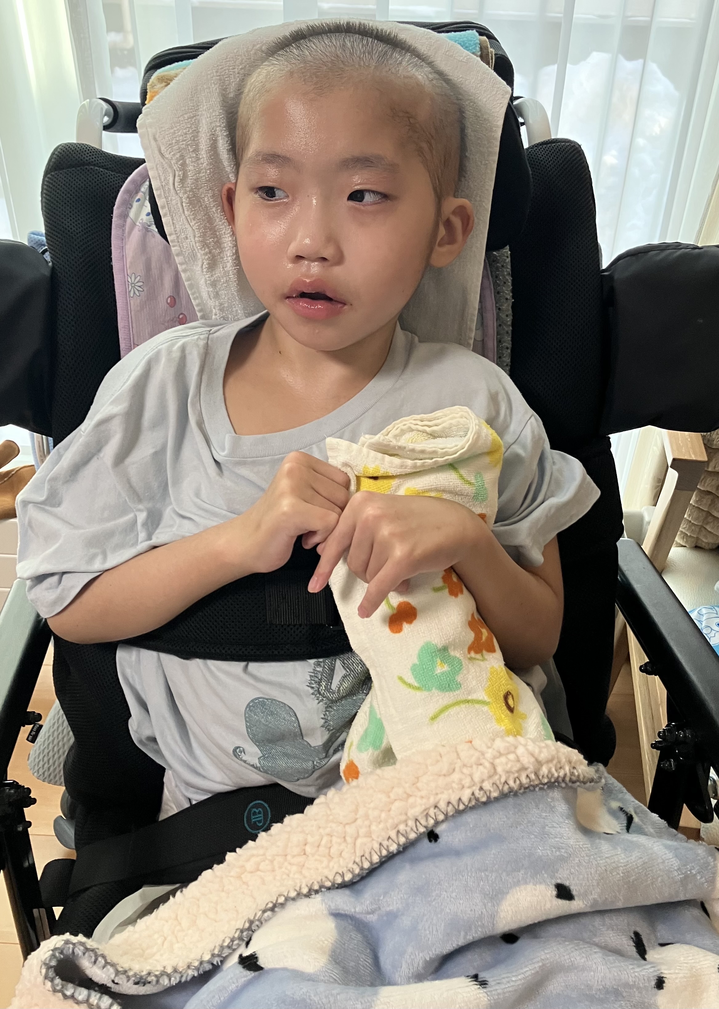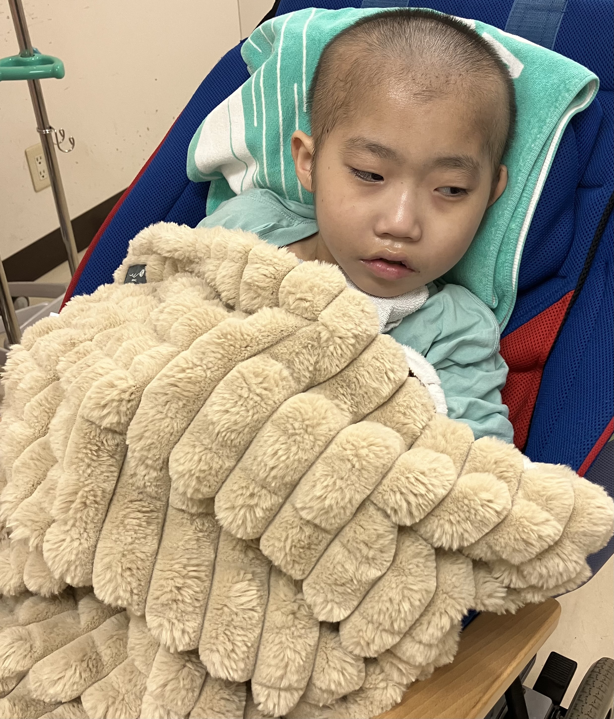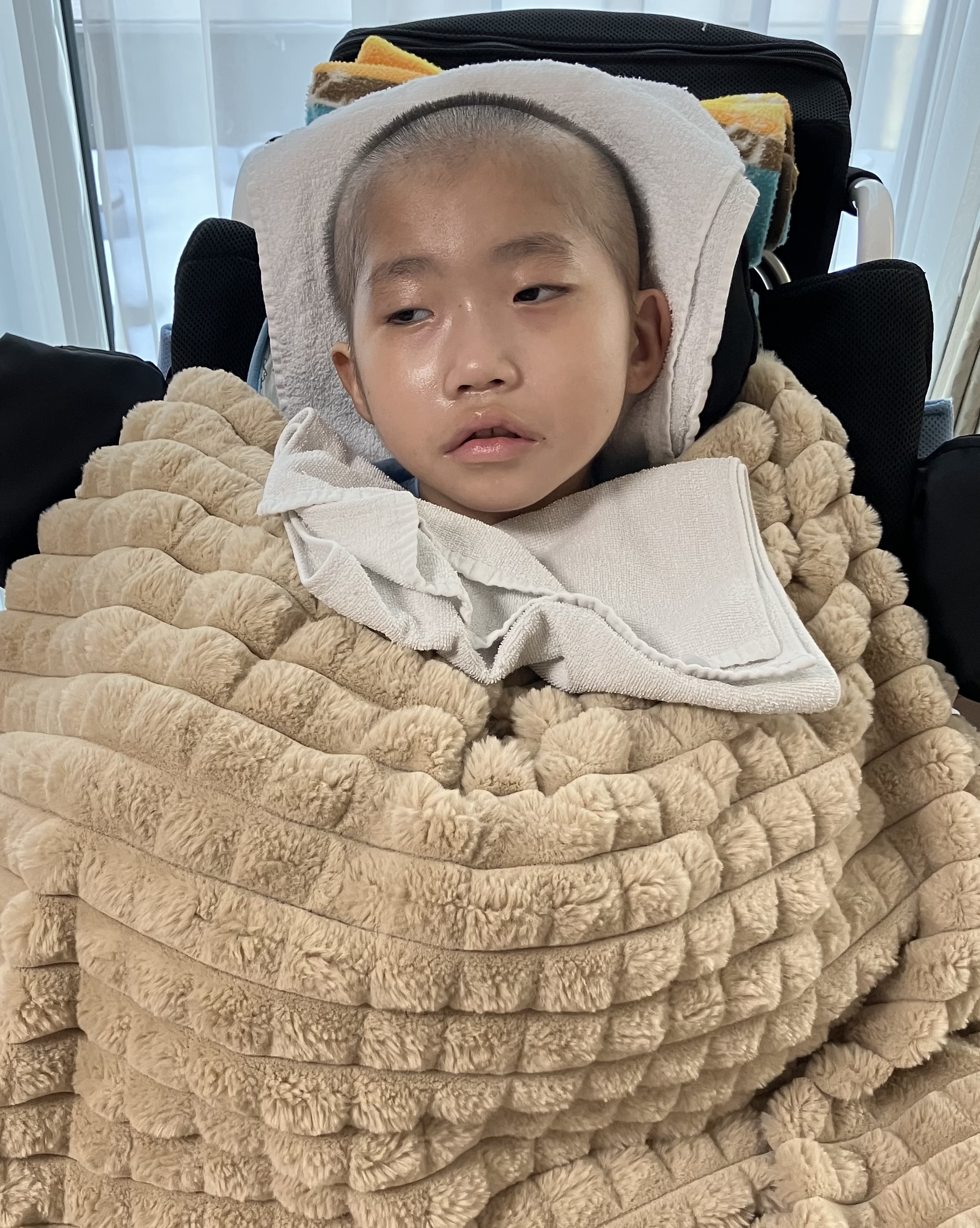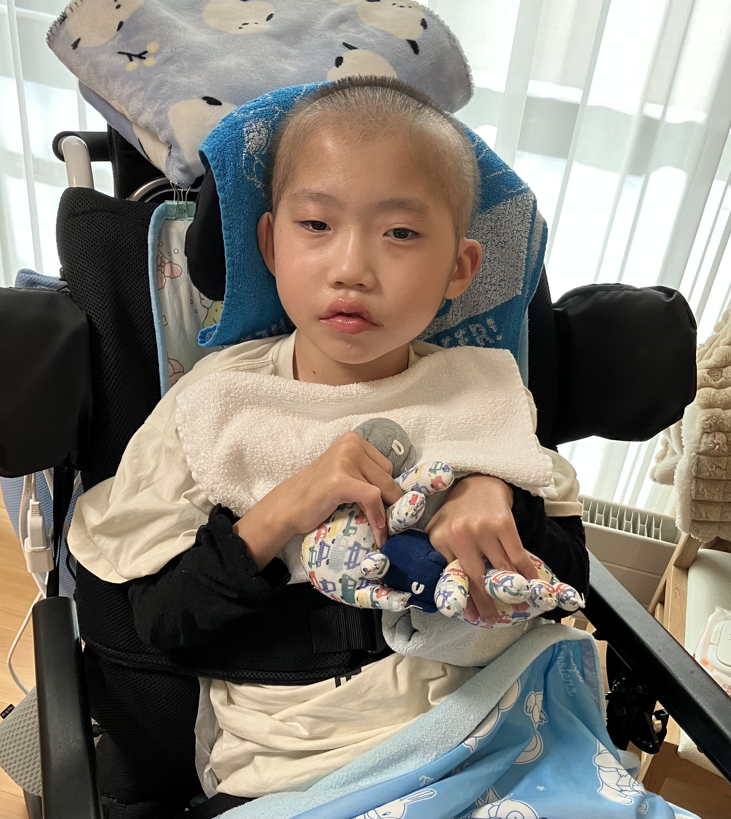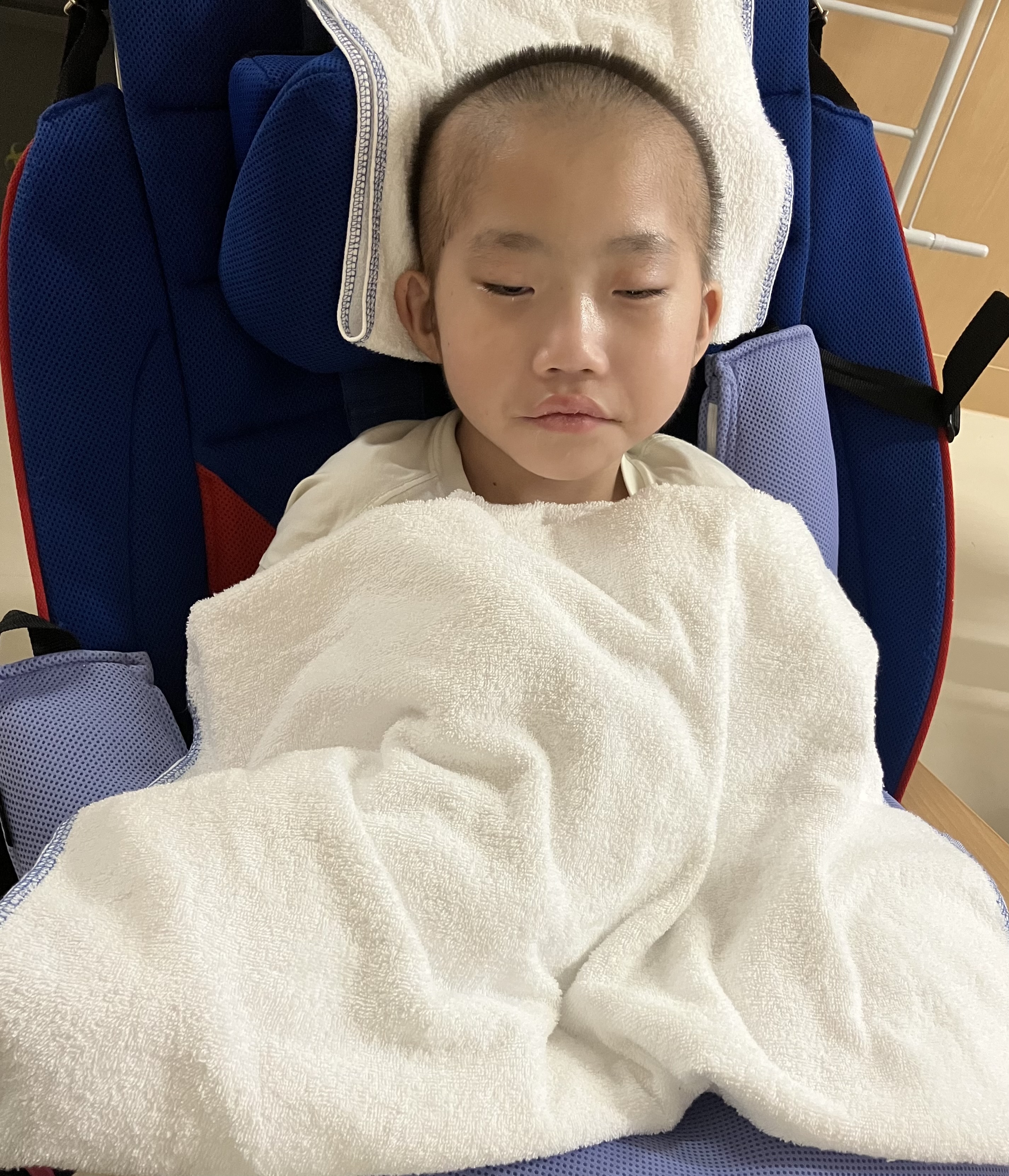 ~10歳長男🐻(小4)~昨日はお熱が36〜37℃台と解熱傾向だった長男🐻👍腕が下がるようになってきました😳かまきりポーズが懐かしい💭昨日も眠い日だったようでまぶたが重そうでした😅日中は泣くことも多く切なそうに泣いていましたね💦以前は発熱で脱力して泣く元気がない状態から解熱すると、全身の反り返りや突っ張りが強くなって激しく泣くのが長男🐻の病み上がりパターンでした。(バギーに座れないくらい反り返っていましたね💦)今回は反り返るような突っ張りはなく切なそうに泣いており、身体がだるくて切ないのかな?という印象です。だるさはまだまだあると思いますが、ガバペンで体が突っ張ったり、痛みが緩和されたことは良かったなと思います😌泣き方が違いますね👀足首に入っていた点滴が腫れてしまったため、手首に点滴を入れ直し、採血もしました。まだまだ大きく変化はないですが、少しずつ改善傾向にあることがわかって良かったです😌リハビリでは、関節可動域練習を中心に実施していただきました。全身の力が抜けててユルユルでしたね👀膝や股関節、骨盤や体幹も単関節や分節的に動きがでるようになってきて、以前までの筋緊張とは全く違います😳今までは股関節を動かすと体幹も一緒(板のよう)に一体化して動いていたので、関節にゆとりができたことは良きでした👍2年という歳月の中で、筋の短縮や拘縮になっている状況ではありますが、まずはゆとりができた範囲で体を動かしていきたいと思います💪がんばろー⤴️↓なぜか寝る前になると顔が赤くなって心拍数が上がる😣寝にくそうでしたが、体温37.3℃だったためそのまま様子を見ます。その後はなんとか眠れて、朝は穏やかさんに眠れていました😌