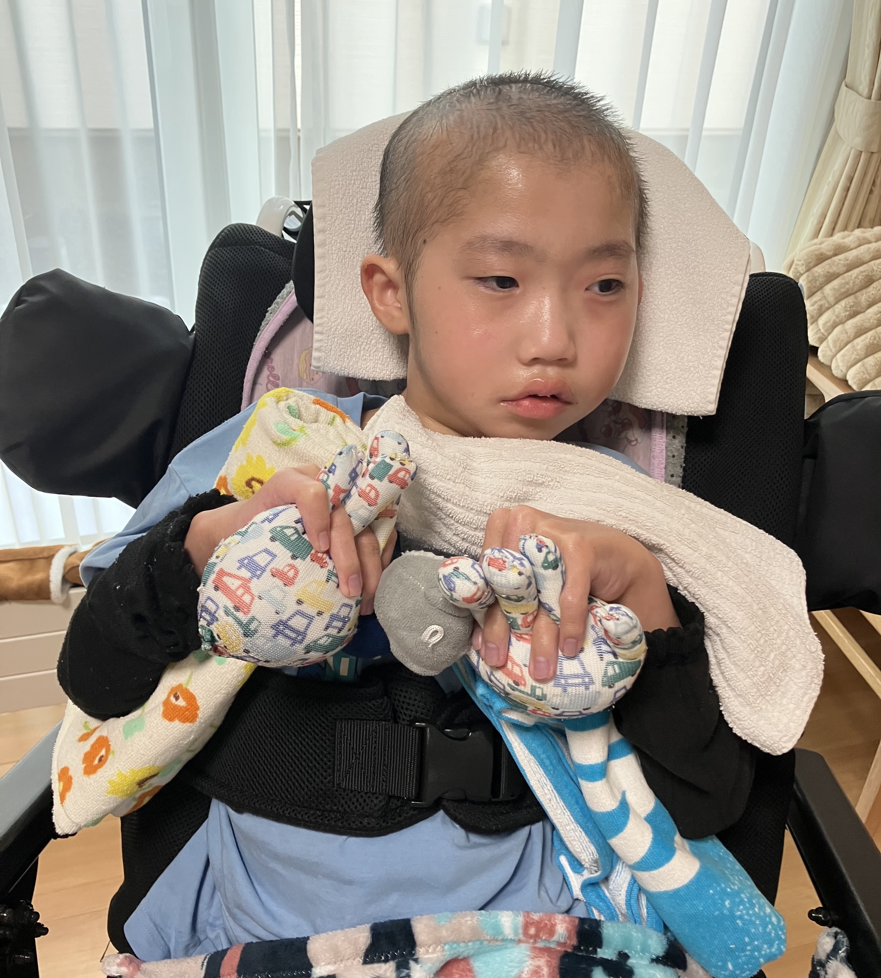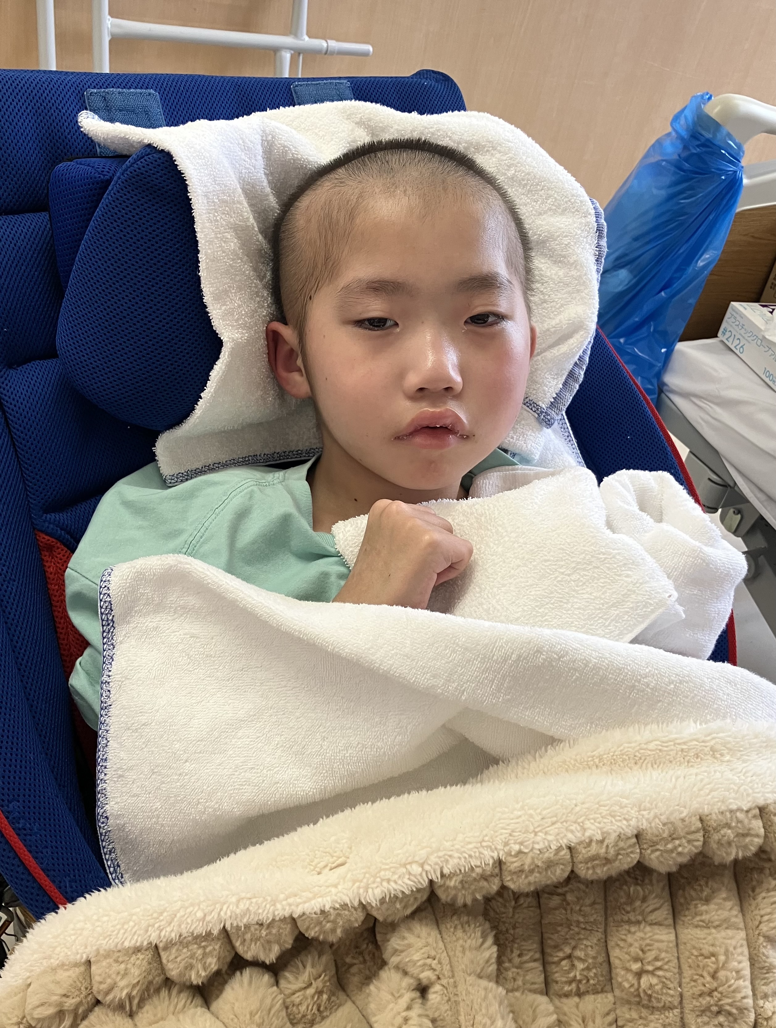~10歳長男🐻(小4)~昨日は寝ている時間が多かった長男🐻昨日も38.0℃台と静かにお熱が続きます💦なかなかお熱が下がりません🥺初日からリハビリも開始しました😳理学療法士さんと作業療法士さんがきてくれて、関節可動域訓練と胸郭のストレッチ中心に介入してくれました。感染症対応でエプロンやメガネなど防護服スタイルで関わってくれて、お手数おかけしておりますが、ありがたいです😊よろしくお願いします🙏そして以前から長男🐻の体のことを知っててくれていたので、長男🐻の体の脱力具合にびっくりしていました👀昨日は定期受診日でしたが、入院中のため、血液内科の先生、皮膚科の先生が病室まで来てくれました。皮膚も問題なし。血液内科の先生も炎症値とかは高いけど、免疫機能などは問題ないとのこと。歯科受診もできました🦷いつもは全力で泣きながら歯科診察を受けていましたが、ガバペン効果とお熱で脱力系長男🐻を見て、先生「こんなに静かなこと初めて😳大丈夫?心配。」と話していました😅穏やかすぎて、口が開かないことを相談すると先生「それは人それぞれ口が開きやすいポイントが違うから、探してください。」とダイナミックな助言をいただいたので、模索したいと思います😅午後も眠っていましたが、夕方から少し泣く元気も出てきました。泣いてる姿や声を聞くと、ホッとできるという不思議な感覚です😌就寝前も38.2℃だったため、解熱剤を使用して、夜間はぐっすり眠れていました😌熱が出てから丸っと5日経ったので、そろそろ落ち着いてほしいです🙏