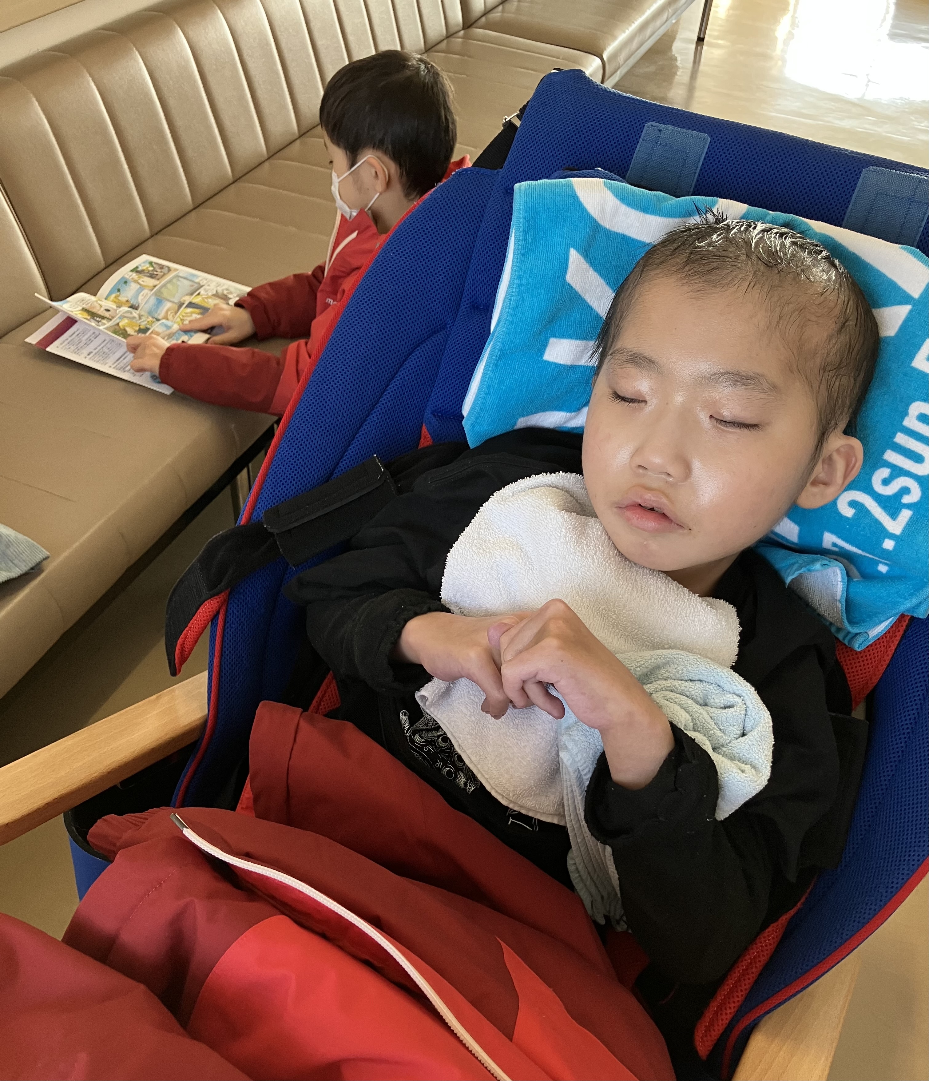 ~10歳長男🐻(小4)~昨日は兄弟揃っての受診日でした🏥🧑🏫診察🧑🏫先生「3月18日にボトックス注射を予定して、その時にガバペンの増量も検討しましょう。今日はお薬の変更はなし。前回熱で外来受診したけど、すぐ落ち着いて良かったね😊」とのこと。胃ろう交換も無事に終了👍🤸リハビリ🤸ずっとお世話になった理学療法士さんが今月で退職してしまうため、昨日のリハビリがその方との最後のリハビリになりました🥺大学病院退院後、函館の病院に帰ってきてから、ずっと担当してくれててビニールプールを準備してくれて、初めてのお風呂を体験させてもらったり、節分体験、沖縄やUSJの旅行体験などなど、いろんな経験をさせていただきました🙏退職すると聞いて、すごーーーく寂しいですが…2年半本当にありがとうございました🥹そして歯科・皮膚科も問題なく終了し、長丁場の受診終了💪お疲れ様😌そしてホッとした夕方…ヘルパーさん「ちょっと体が熱いかも…」と話があり、検温すると38.8℃と発熱あり😱最近、週1ペースくらいで発熱する長男🐻😥何熱なんだろうか…そして今朝は36.8℃スタート😳疲れすぎても熱が出るんだろうか…今日はおうちでゆっくりお休みします。~7歳次男🐒(小1)~👀眼科👀先生「両目とも視力1.2、眼圧問題なし。移植後の経過も良さそうですね😊目の方は定期的に検査して行きましょう。次は半年後ねー。」ということで目は問題なし👍良かったです😌次男🐒も待ち時間の長い受診でくたびれてましたね😓お疲れ様ー🤗