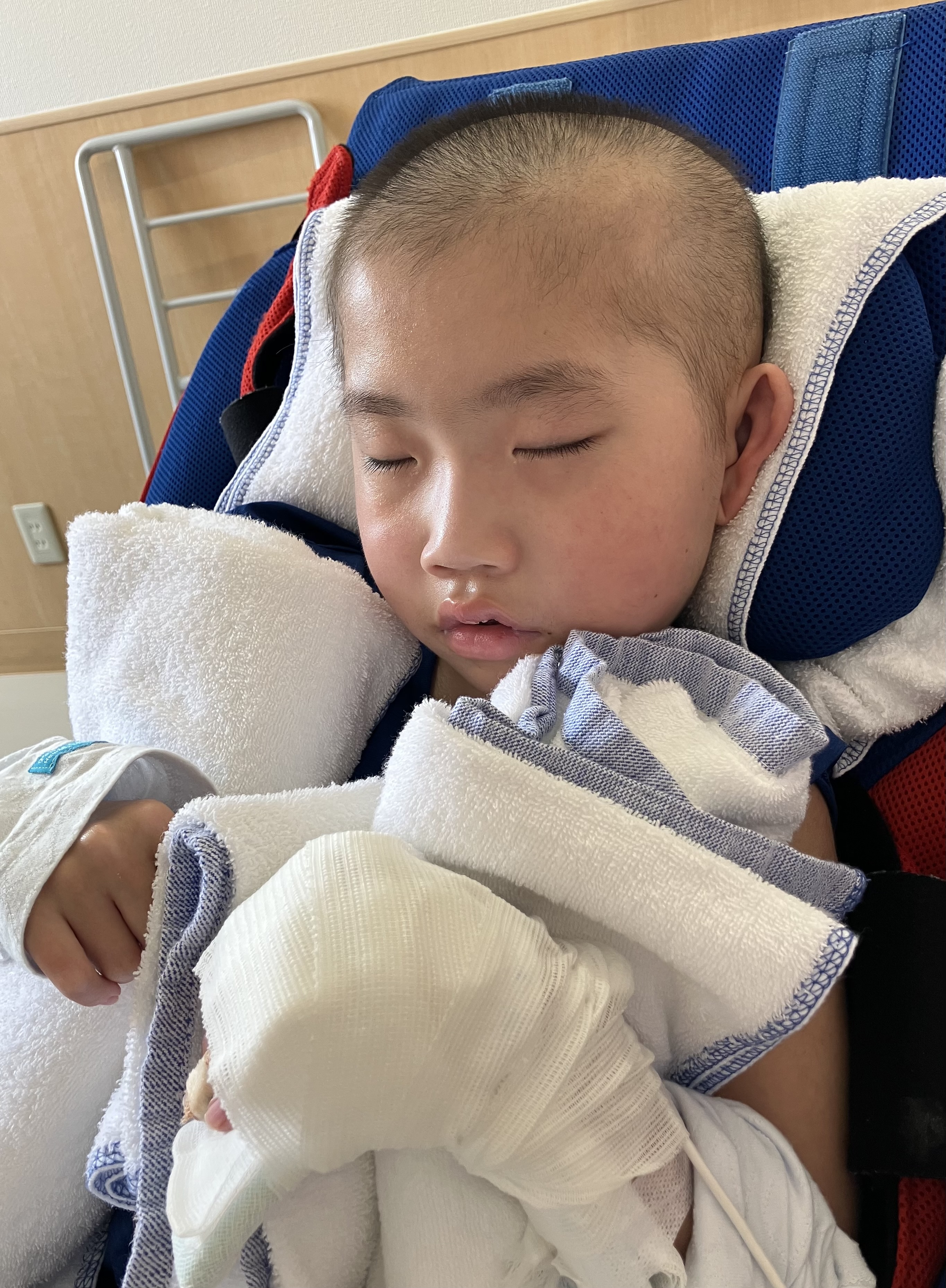 ~10歳長男🐻(小4)~昨日は、入院時から頑張っていた点滴が使えなくなってしまって…再挿入のついでに、採血、レントゲン、尿検査も実施。結果…先生「レントゲンも肺がすごく綺麗になっていた。採血も炎症値が下がってていい結果でした。抗生物質は明日の昼の分まであるので、それが終わったら退院でも大丈夫ですよ。」ということで…1日早く退院決定👏嬉しいー☺️先生「退院後も様子を見て、やっぱり熱が出るようなら誤嚥していないか改めていろいろ評価が必要になってくる。また熱が出るようなら受診してください。」とのこと👀まずはおうちに帰ってから経過を見ていきたいと思います🙏昨日はリハビリも頑張り、泣きながらうつ伏せ練習を頑張った長男🐻泣いてましたが、終わった後はやっぱり痰もしっかりサクションで引けて、長男🐻もスッキリした表情になります👍うつ伏せ練習はおうちでも続けようと思います💪今日の夕方帰ります🚗パパお願いします🙏