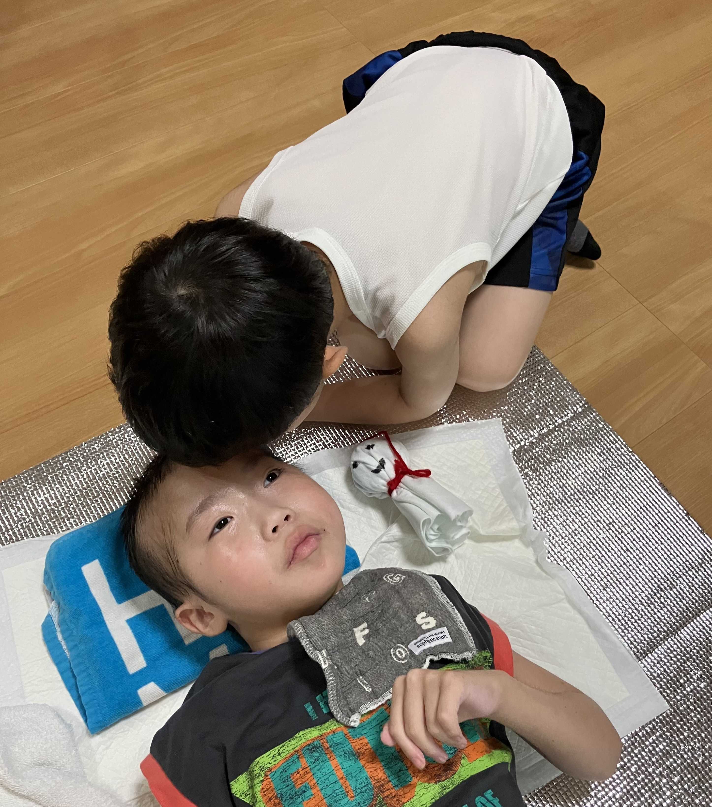 ~10歳長男🐻(小5)~昨日は、おうちでゆっくりした長男🐻日中はすごく穏やかさんで、静かちゃんでしたね😳シャワー浴に入ったり、一緒に体を動かしたり、うつ伏せ練習をしたりとゆったりおうち時間を楽しみました😊昨日は警報アラームが鳴り響いて、改めて災害時の対応について考える機会となりました😣我が家の周囲は避難指示は出ていないため、自宅待機でしたが…もし避難指示が出た場合に自分たちだけなら身一つで移動できるけど、医療的ケアが必要な長男🐻の場合はそうもいきません💦また冬場と夏場でも対応や必要なものが変わってくると思うので…改めて必要物品や備蓄品について確認が必要だなと感じました😣