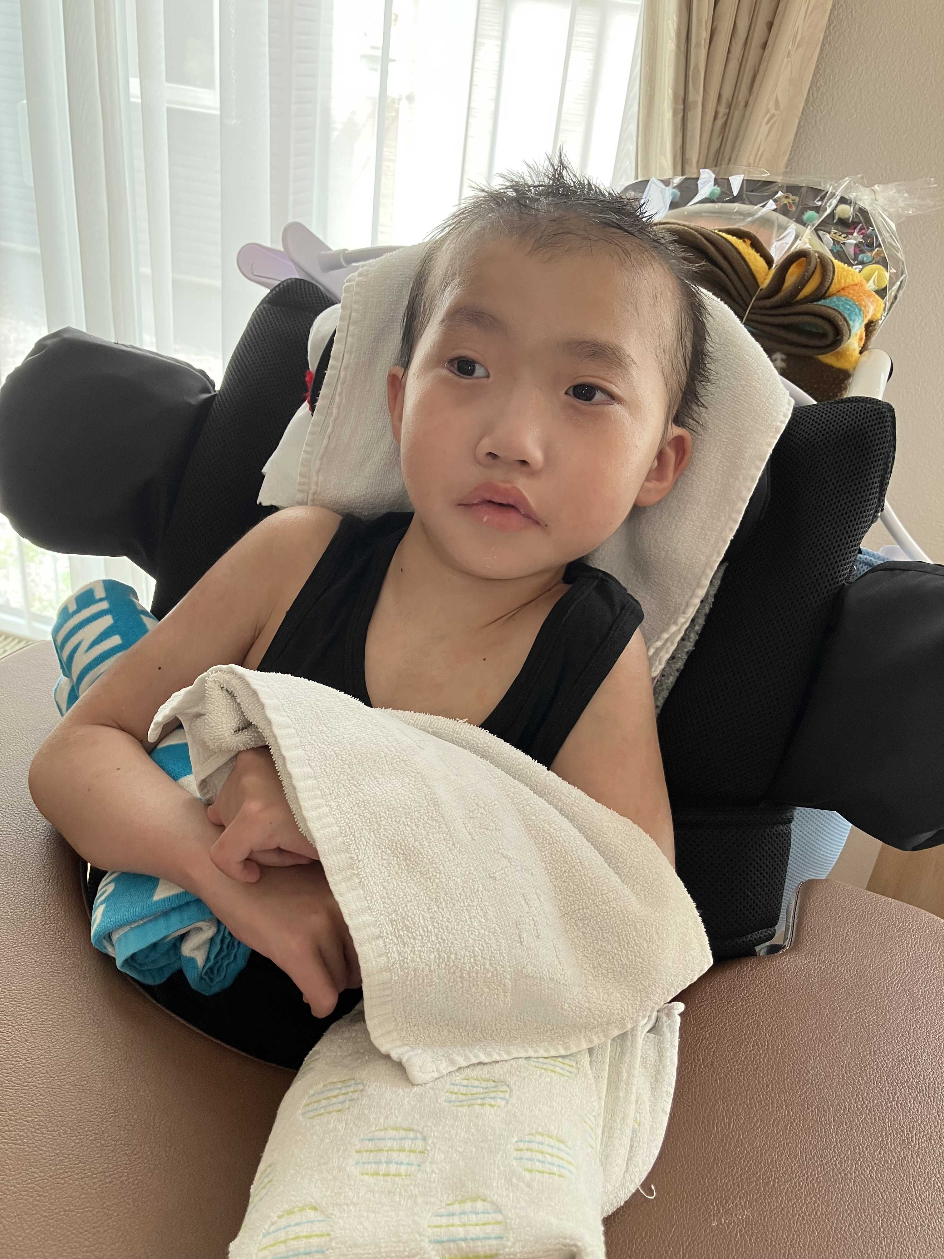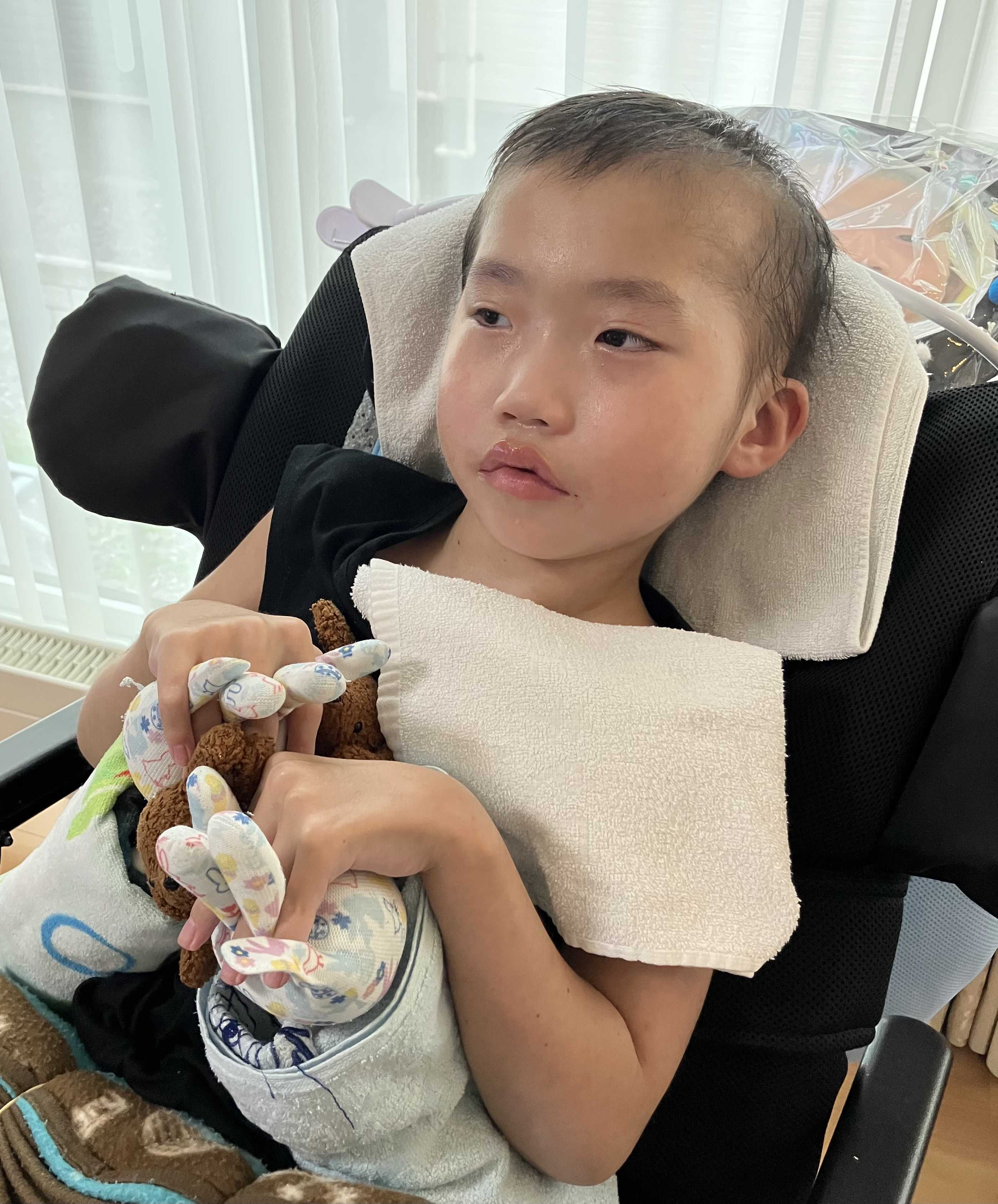 ~10歳長男🐻(小5)~昨日は、おうちでゆっくりした長男🐻びっくりするくらい穏やかさんでした😳最近はまとまって寝てくれるようにもなり…寝れるくらい体が楽なんだなぁと思いますし、夜眠れるようになったことは本当に良かったです😌お互いに 笑😆 睡眠大事👍でも静かすぎてちょっと心配になりましたね😅シャワー浴もあって、看護師さんがバイタルチェックをしてくれましたが、問題なし👍シャワー中もうっとりしていたそうです😄気持ちよかったね🤗先日の整形診察の際に、筋緊張が強いのに伴って側弯が強くなってるからコルセットを使ってもいいのかも…というお話があったそうで、側弯が強いなということは、家族としても強く感じるところです😣このまま側弯変形がひどくなると呼吸のほうにも影響が出る可能性があるため、なんとか予防したい…。ただコルセットとなると、座ったり歩くことがあれば必要かなと思いますが、寝たきりでバギーに座ってることが多い長男🐻の場合、コルセットによる皮膚トラブルも懸念されます💦まずは筋緊張亢進に伴う変形増強であれば、ボトックス注射かガバペン増量が今できる選択肢になるのかなと思うので…まずは次回の受診時にボトックス注射の予約をして、経過をみていきたいと思います🙏