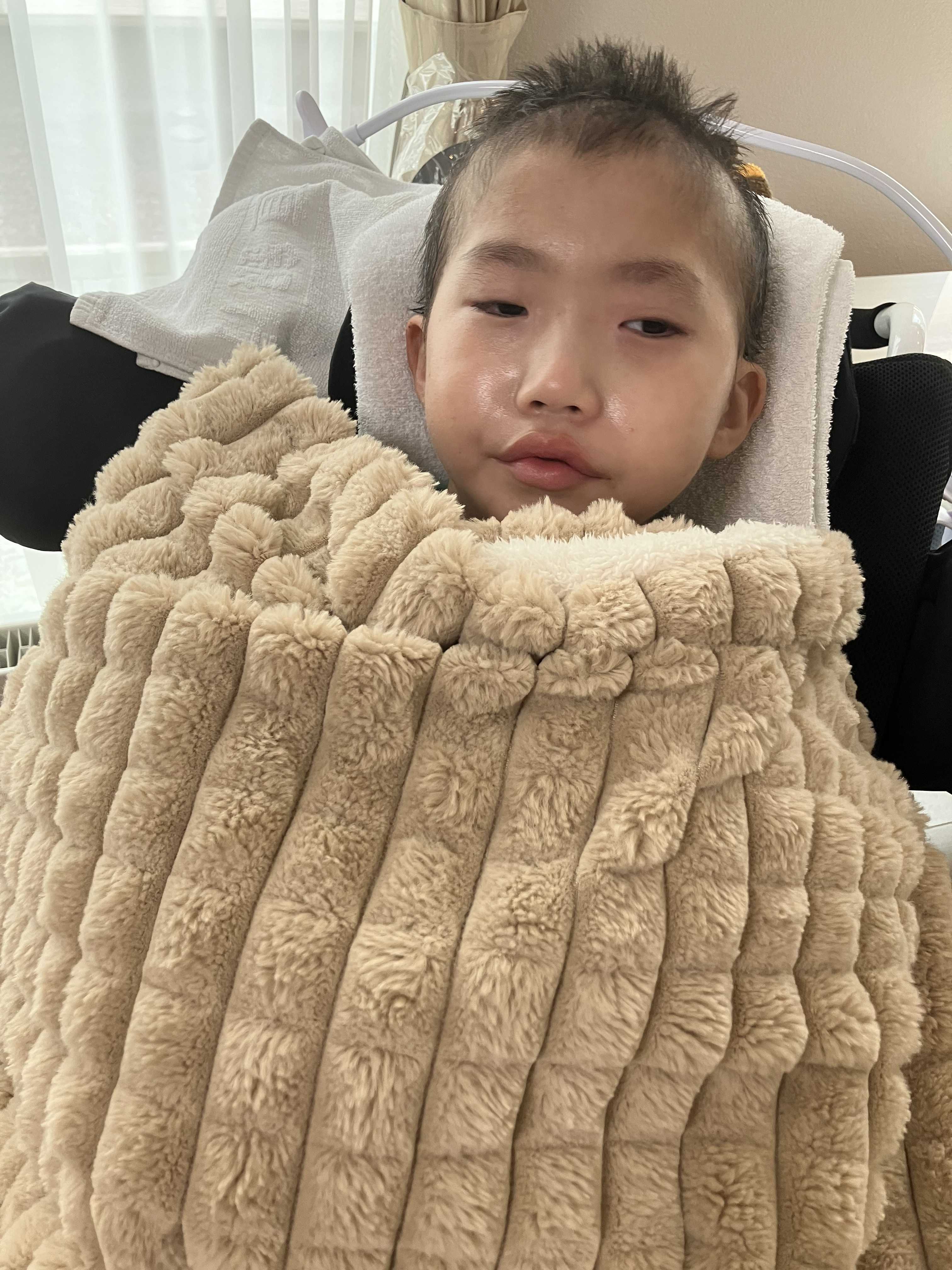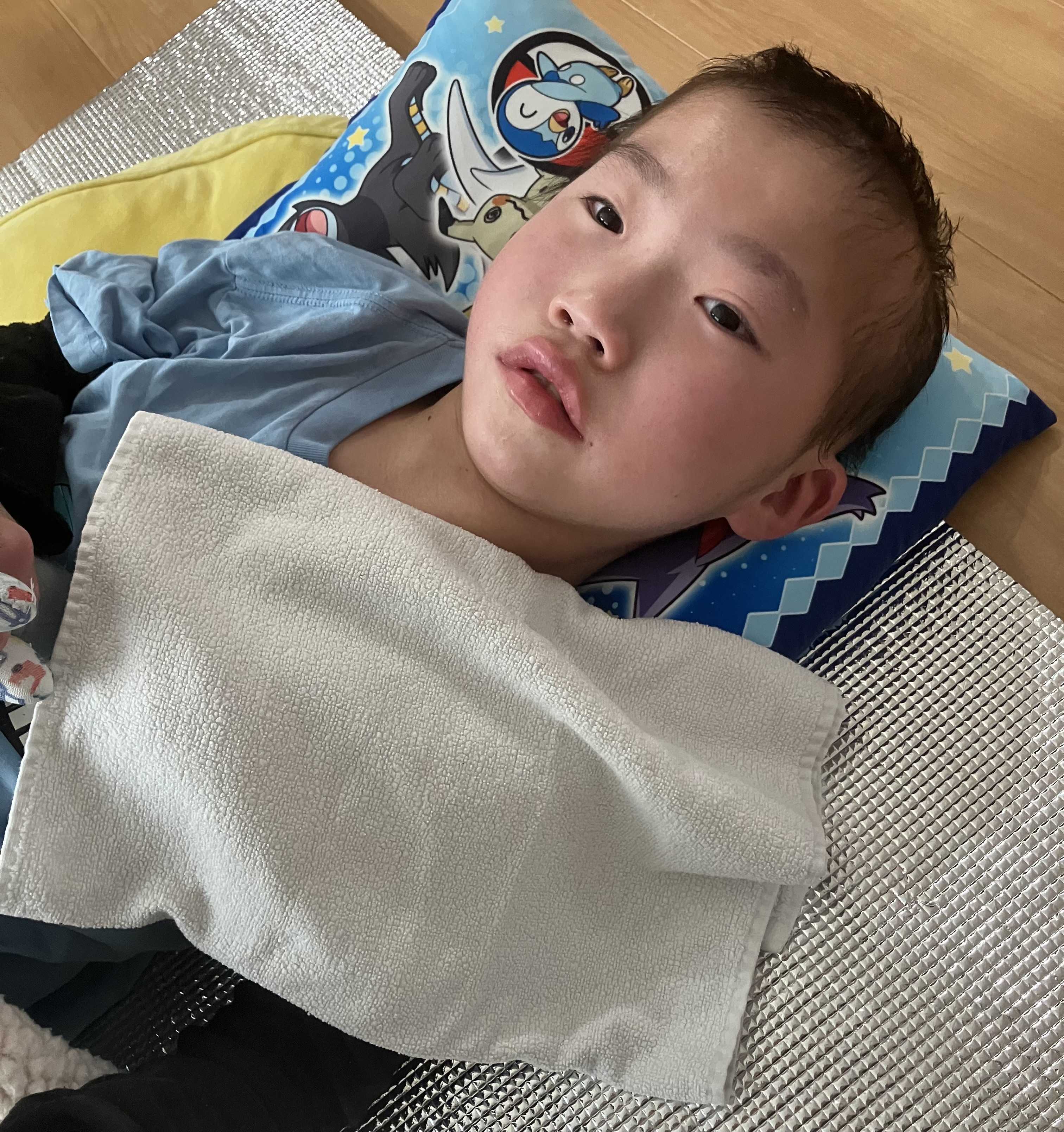 ~10歳長男🐻(小5)~昨日は、お家でゆっくりした長男🐻痰はゴロゴロしてるけど、咳をしてしっかり自分で痰を出してくれるので親的には感動するくらい嬉しい🥺自分で痰を出して長男🐻えらい👍体調は悪くなさそうでしたね☺️うつ伏せの時に、ハンドマッサージャーを当てるのですが、特に首や肩に当てると気持ちよさそうにしていた長男🐻です😄今日は元気に学校🏫と放課後等デイサービスへ行けるかな?👀