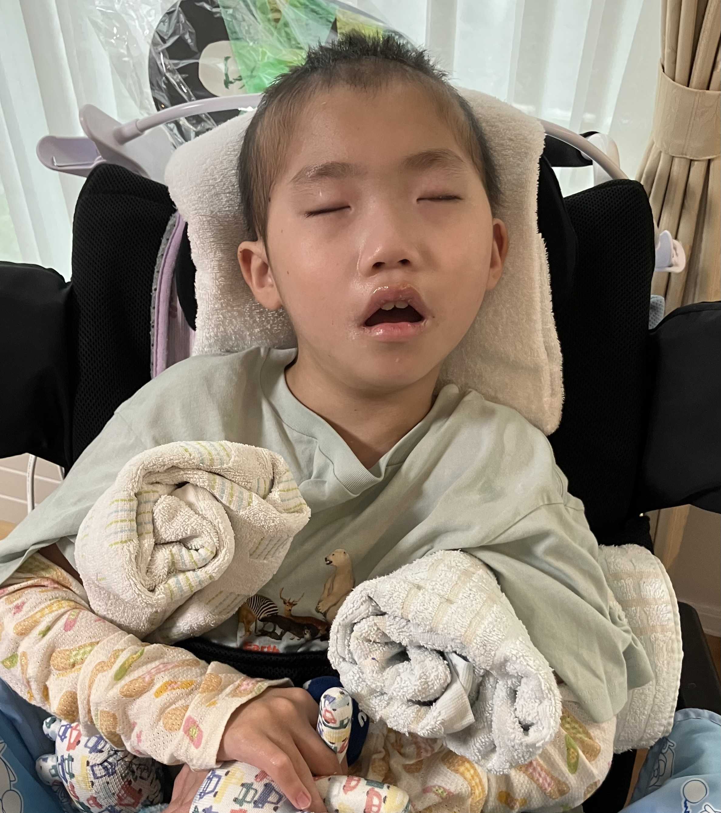 ~10歳長男🐻(小5)~昨日は、おうちでゆっくりした長男🐻本当は学習発表会の総練習があったので行けたら良かったのですが…痰が多めで体調ばっちり👌!という感じではないので、水曜日はいつも通りに休息日としました。相も変わらず痰は多めですが、体調的には悪くなさそうな印象でした😊うつ伏せの方が寝れてるんじゃないかな?というくらいリラックスしていることが増えてきましたね👀慣れてきたかな?☺️そして今日は学校🏫へ行く予定だったのですが…朝の3時から咳き込み?ムセ込みがひどくて、サクション頻回💦💦💦ムセ込みが全然落ち着かなくって、通学・通所は厳しいと判断してお休みです😣熱はないし、酸素も取れてるけど咳と痰がなかなか落ち着かないです😥明日は学習発表会だけど…どうかな…😣痰が減りますように🙏