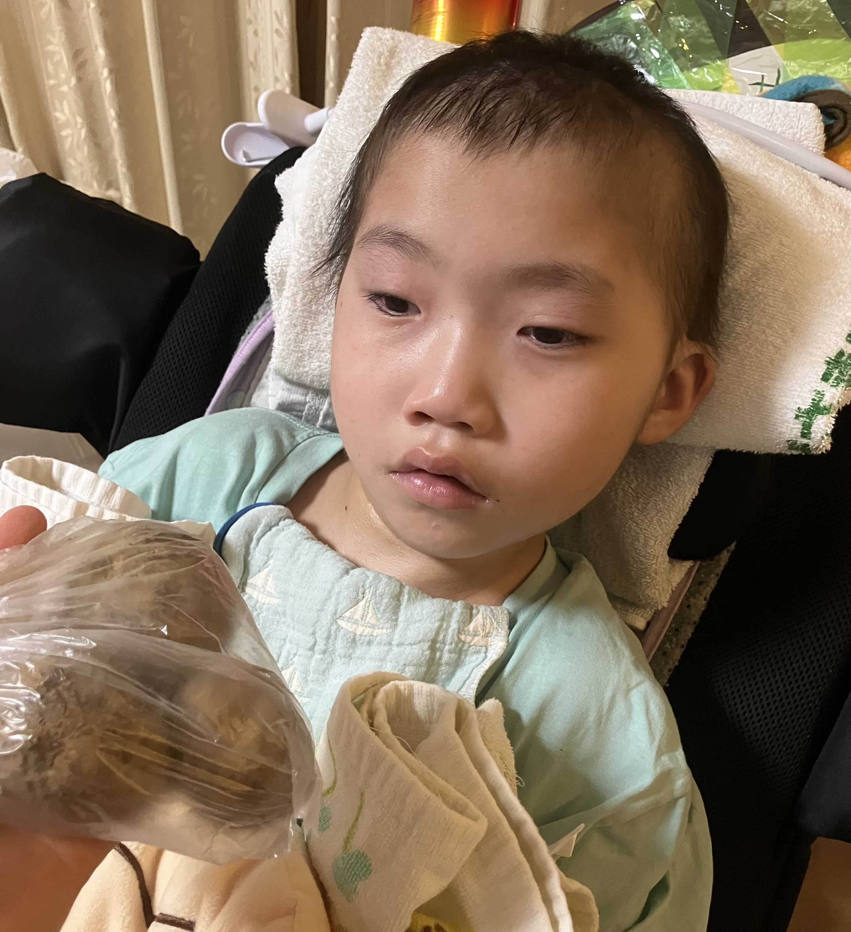 ~10歳長男🐻(小5)~昨日は、おうちでゆっくりした長男🐻熱はないけど、痰がすごい😥緑色の痰がいっぱい出ます💦身体の中で何かと闘ってる…。痰が増えて、溜まると酸素飽和度が下がってしまうので、痰を出すのが長男🐻のお仕事。うつ伏せしたり、胸郭を動かしたりと長男🐻頑張っておりました。それでも夕方からは痰の量が減ってきたので、このまま落ち着いてほしい🙏今日は訪問看護師さんと相談して通学するか決めます。💬ママのつぶやき💬先日の受診日に…先生「なんかお顔がパンパンだね😳体重も少し増えてきたし、栄養量を見直そうか?」というお話になりました👀たしかに身体はそうでもないけど、お顔にだけどんどんお肉がついていく長男🐻最近は筋緊張も落ち着いてきて、泣くことも減って、エネルギーを消費しないから余計に身になりやすいのかも💦ということで…朝イノソリッド 150→100ミキサー食 300昼家ではイノソリッド300注入してたけど、なるべくミキサー食300へ変更する。夜イノソリッド 200と栄養剤のイノソリッドを減らして、ミキサー食を増やして経過を見ていきます。